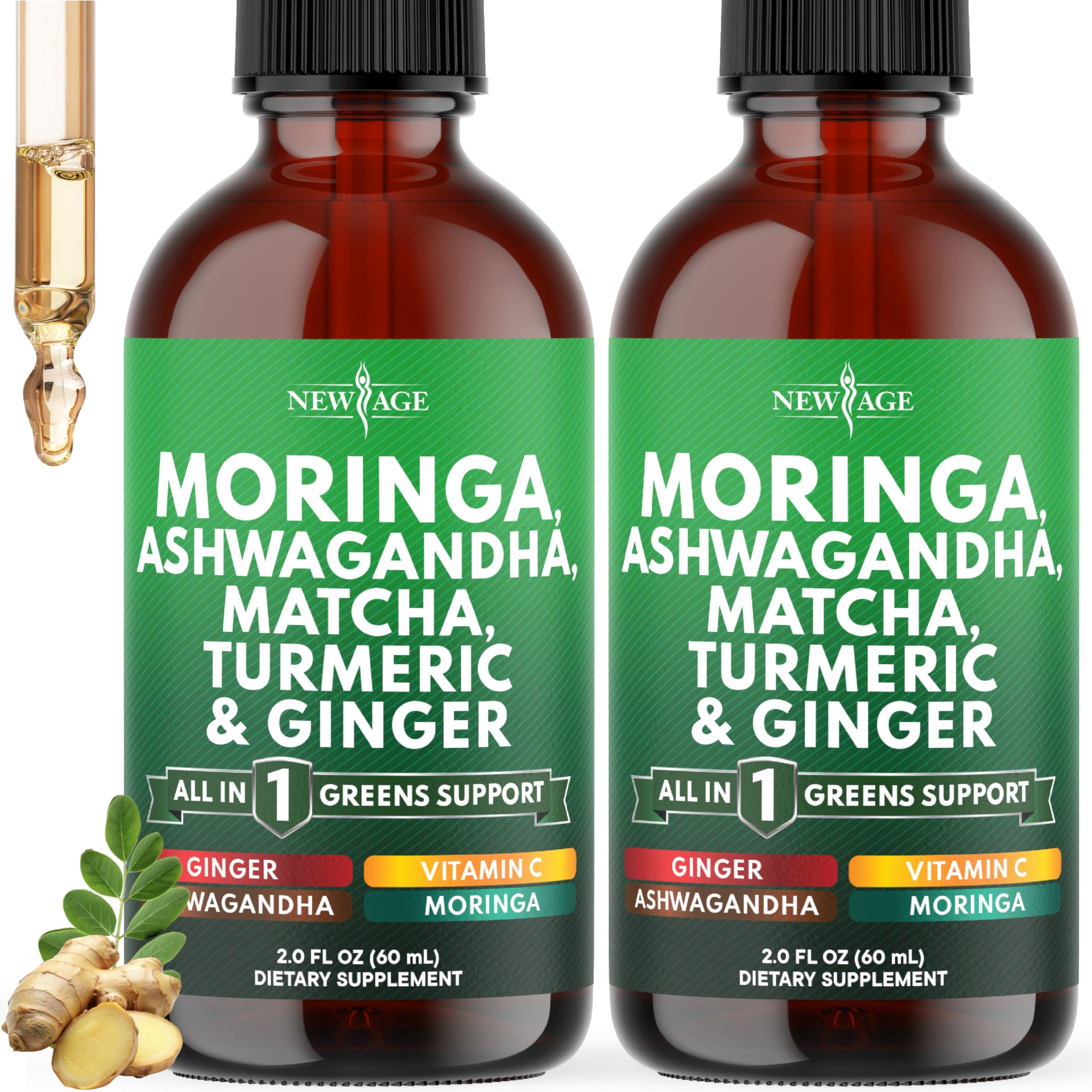 Clean formula, trusted quality – New Age Adaptogen Greens Drops are vegan, non-GMO and alcohol-free. Manufactured in the USA in a GMP-certified, third-party tested facility to ensure purity, potency and consistency—never any artificial fillers or preservatives. . Daily greens micronutrient support – Includes Matcha extract plus vitamin c to support metabolism, immune strength and overall nutrient balance. Designed as an easy everyday wellness booster for men and women. . Moringa All in 1 Blend - a precision-balanced matrix of matcha, organic chlorella, Ceylon cinnamon, holy basil, baobab, berberine, coleus forskohlii and vitamin C, perfectly paired with moringa, turmeric and ginger. Chlorophyll for vitality – Liquid chlorophyll works as a natural internal cleanser to support digestion and overall energy. Helps promote fresh breath and gut balance while supporting daily wellness from within. . Moringa Supplement - plant-powered drops made with moringa, ashwagandha, spirulina, turmeric, ginger, vitamin C and our all in 1 support blend into easy liquid servings with phytonutrients and micronutrients.