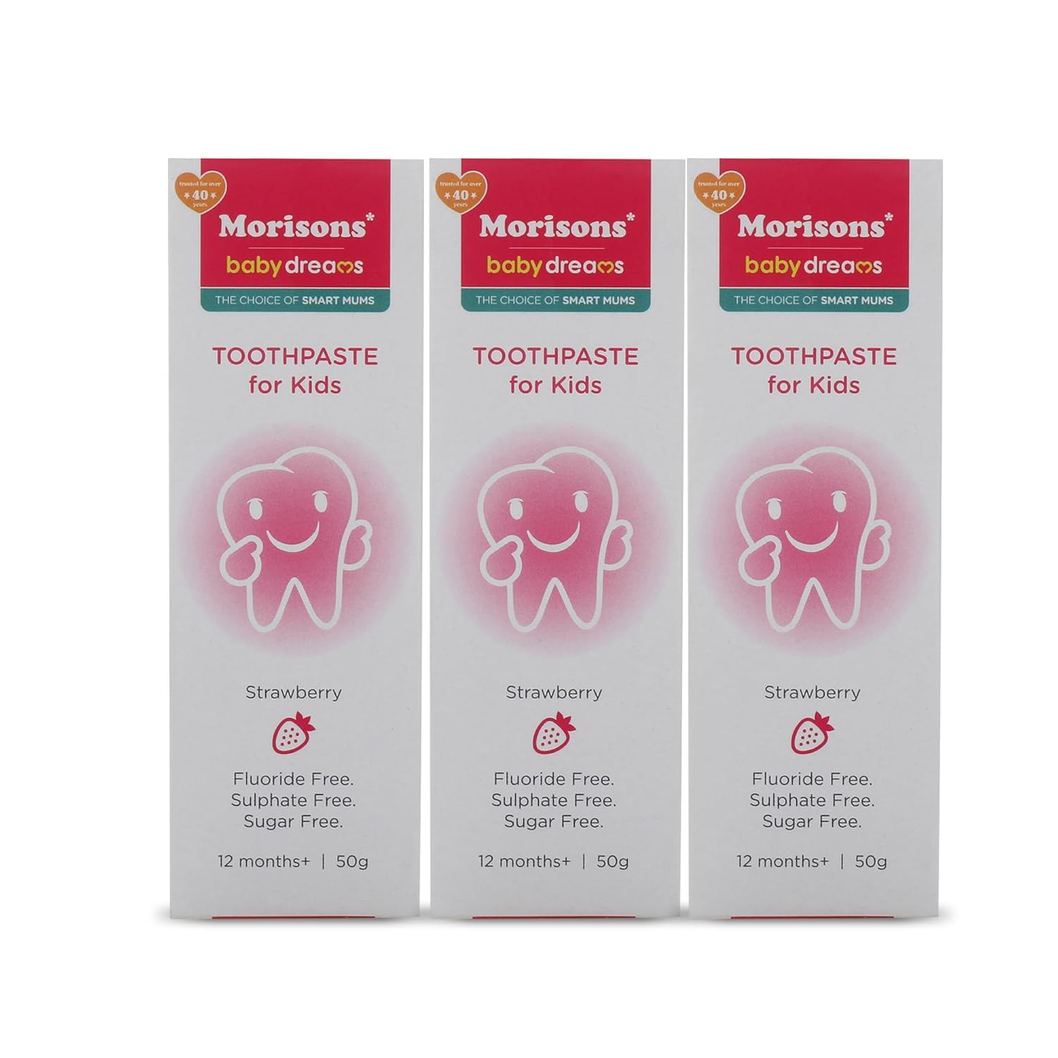Morisons Baby Dreams Kids Strawberry Flavour Toothpaste 50 gm (Pack of 3) Fluoride Free Sulphate Free & Sugar Free 12M+