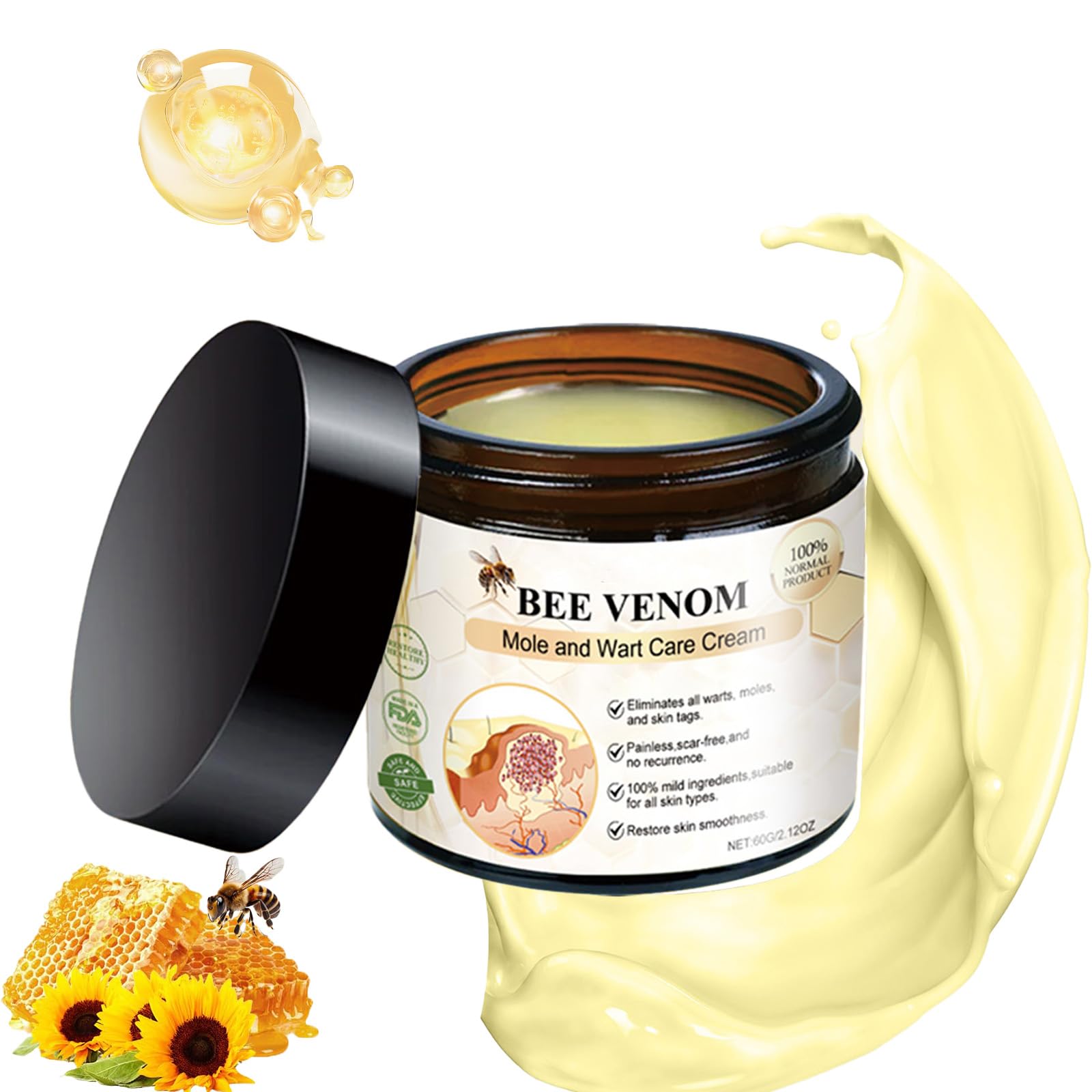 Bee Venom Treatment Cream is applied to all parts of the body such as Face, neck, back,simply wash and dry the area to be applied. Then Simply Apply Gently to the Skin, Massage Completely and Absorb,Use it 1-2times every day. Bee venom comprehensive cream whole body skin cream contains rich and powerful ingredients to help reduce various skin problems, nourish, moisturize and plump the skin, making the skin healthier and fuller, and making the skin firmer and younger. Our bee venom skin treatment cream,Suitable for all groups of people to use, the skin repair and maintenance of play a very good effect ,don't feel any sting or burn from the Bee venom cream. Been venom ream Advanced Firming Wrinkle-Reducing Cream delivers noticeable results, providing visible improvements to your skin's tone, texture, and firmness.Leaves your skin more hydrated and glowing. Our Bee Venom cream uses natural ingredients to safely and effectively,This doesn't sting or cause discomfort like other bee venom treatments. Has a milder smell.