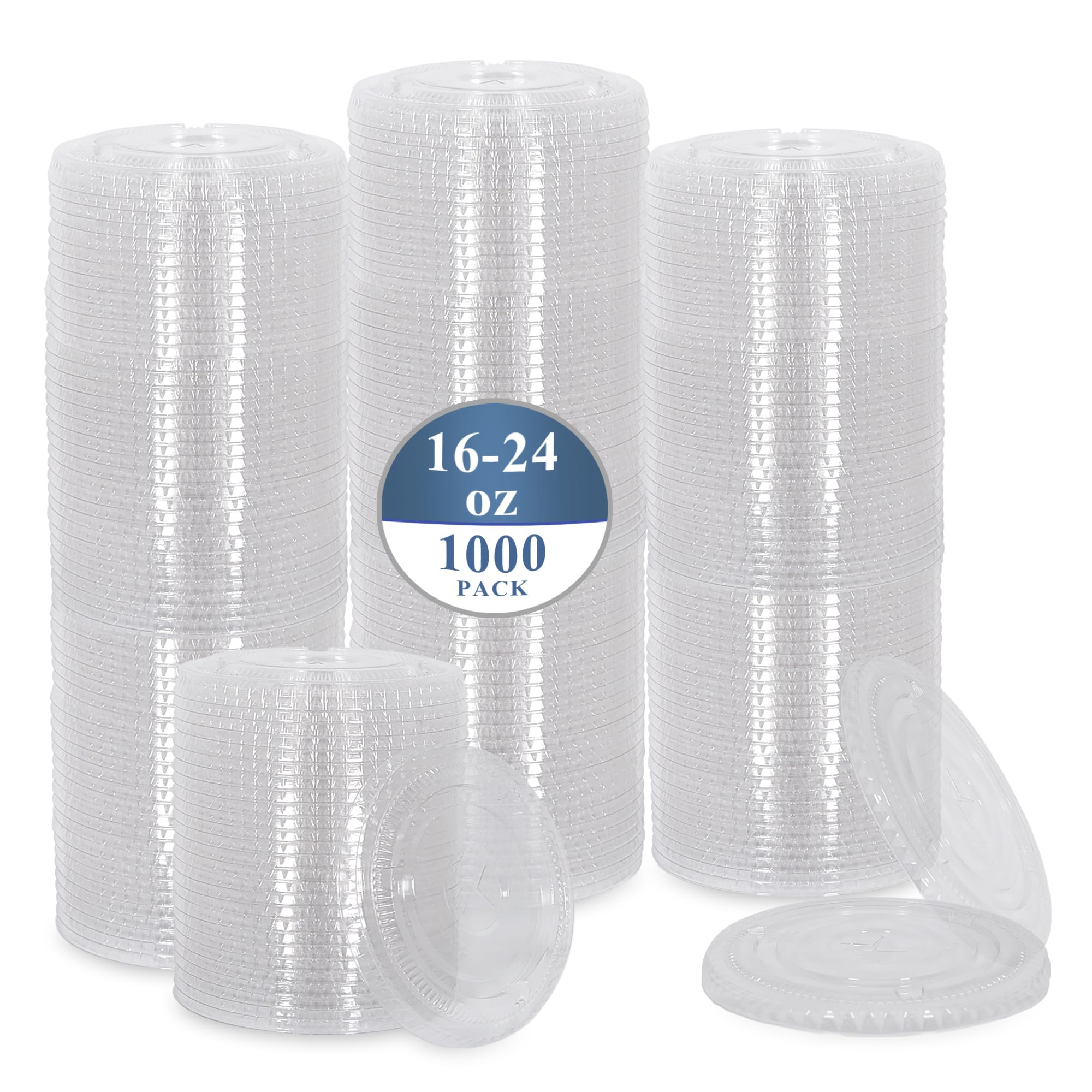 Made of smooth and translucent PET plastic that has been upgraded, thickened and crack-resistant, therefore reducing cracked sidewalls. Plus, its snap fit design provides an upscale feel and appearance. These lids are the perfect way to top off cold beverages like lemonade, milkshakes or sodas etc.A TIGHT FIT WITH THE CUP: Take your favorite beverages while on-the-go. Lids are inserted securely with the compatible cups, preventing spills and leaks plus its flat shape allows stacking and saves space in storage and display merchandisers. STRAW SLOT: This lid features a straw slot, reducing the chance of spillage because no lid removal is required for beverage. The straw slot makes it easy to sip drinks. A must-have addition to any kiosk, concession stand, fast-food restaurant. COMPATIBILITY: These pack of 1000 clear plastic lids are compatible with 16, 20, 24 oz cups having dia 98mm, perfect to cover cold food and drinking cups. Compatible with most ordinary mouth drink cups and wide mouth drink cups. These disposable plastic lids will create an eye-catching presentation for any refreshment. EXCELLENT CLARITY: The crystal-clear plastic construction gives this disposable drinkware an upscale appearance, while also providing excellent clarity. The increased product visibility will help to boost impulse sales for all of your thirst-quenching beverages. PREMIUM QUALITY: Made of smooth and translucent PET plastic that has been upgraded, thickened and crack-resistant, therefore reducing cracked sidewalls. Plus, its snap fit design provides an upscale feel and appearance. These lids are the perfect way to top off cold beverages like lemonade, milkshakes or sodas etc.