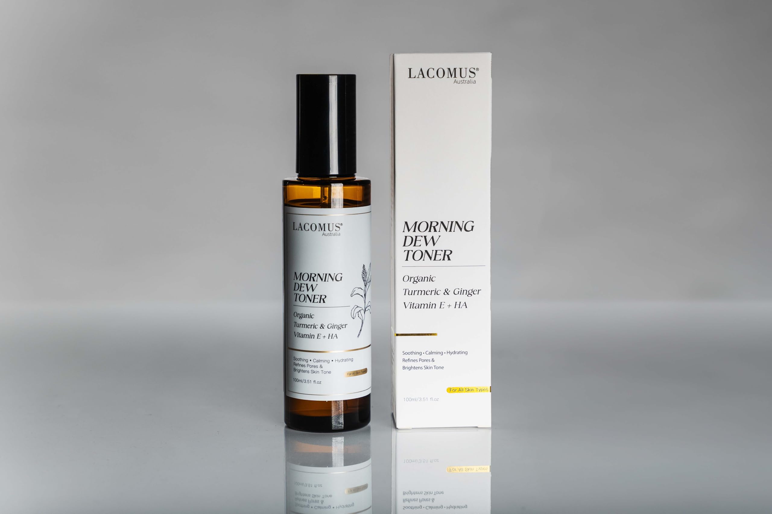 Transform your skincare routine with Morning Dew Organic Turmeric Ginger Toner from LACOMUS Australia. This innovative formula combines the natural power of turmeric and ginger with advanced skincare ingredients like Vitamin E and Hyaluronic Acid to deliver multiple benefits for your skin. The toner works to refine pores while providing deep hydration, making it perfect for daily use. Its carefully balanced formulation helps address dark spots and signs of aging, while maintaining your skin's natural balance. Suitable for all skin types, this versatile toner can be seamlessly integrated into both morning and evening skincare routines. The refreshing formula helps prep your skin for subsequent products while providing essential moisture. Experience the harmonious blend of traditional ingredients with modern skincare science for a radiant, refined complexion.