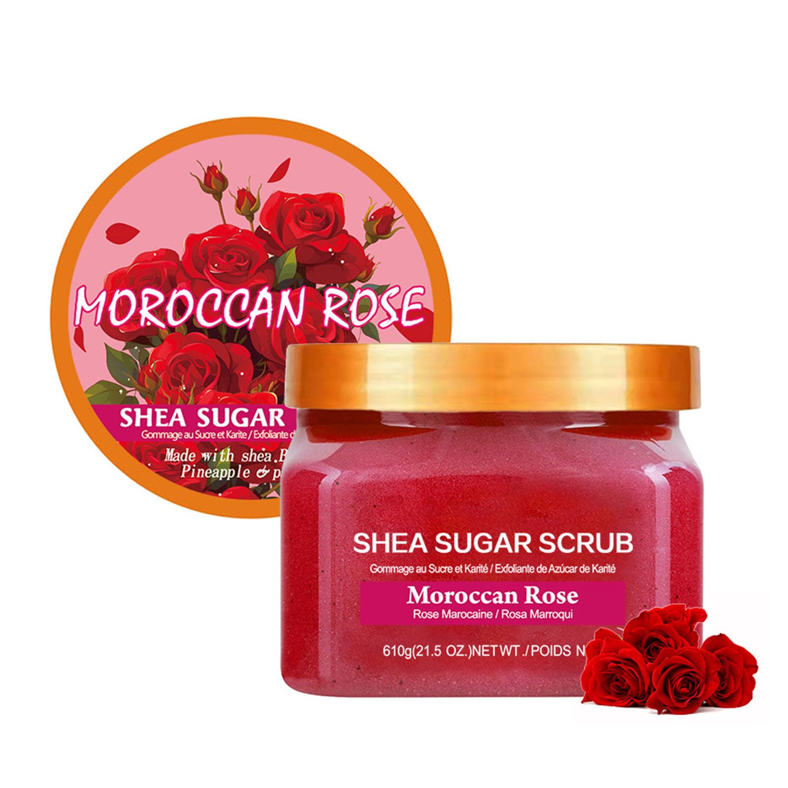 Moroccan Rose Scrub Scented Body Scrub - Rose With Essential Oil Removes Dead Dry Skin For A Soft & Hydrated Feel Smooth gentle and enjoyable exfoliating experience(610G)