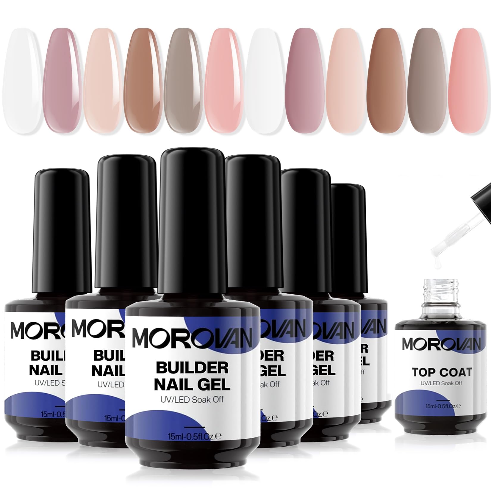 Morovan 5 in 1 Builder Gel for Nails: 6 Colors Builder Gel Nail Kit with Mini UV Light Top Coat Dual Nail Forms 15ml Builder Nail Gel for Nail Extension 6 Colors Nude