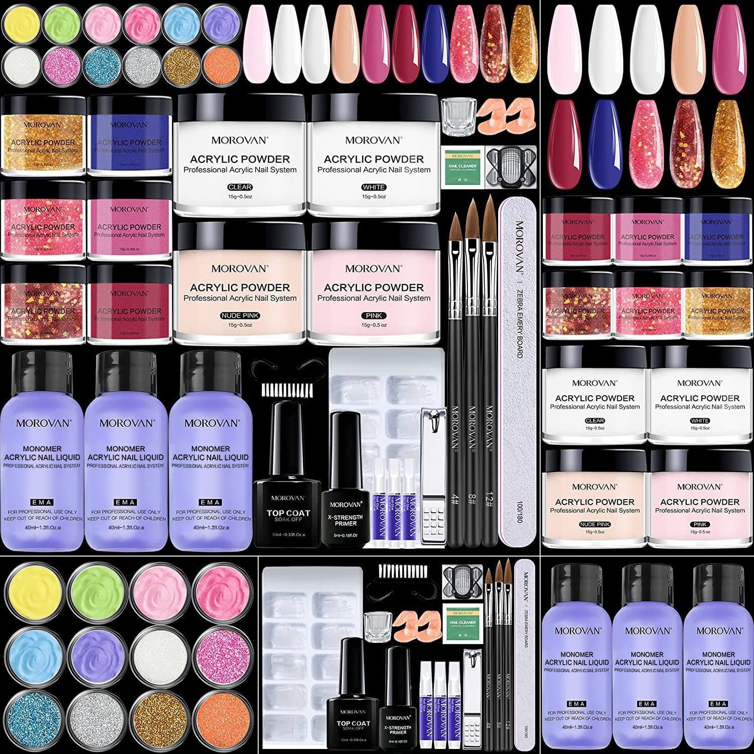Good service-Just use your imagination and creativity to creat and design your favorite nail art with Morovan professional acrylic powder set! We sincerely hope that our products can make you satisfied,if you have any problems,please fee free to let us know and we will help you solve the problems as soon as possible!. Ideal gift- Acrylic nail kit with everything, beautifully packaged, complete set, a perfect gift to start making acrylic nail art at home or inside a studio/salon, perfect gift for wife, girlfriend, mother, and excellent for Birthday/Wedding/Home/Parties/Outdoor/etc. High Quality & Long Lasting- Morovan acrylic nail kit is made of healthy ingredients, which are cruelty-free and no harm to nails. By using Morovan acrylic powder, your nail art will not be easy to peel off and non-yellowing. Acrylic nail kit is long lasting, anti-chipping and anti-peel off. The color is full, natural looking, light and has an impeccable shine finish. The correct operation method can make the nails last longer, more than two weeks. 10 Colors Acrylic Powder- Acrylic Nail Kit complete set has 10 type acrylic powder (15g Clear/White/Pink/Nude, 6×10g other colors), you can easily create a simple and stylish French manicure at home with this acrylic nail set. The drying time of the acrylic powder is relatively long, generally about 5 minutes. Gives you enough time to extend, sculpt your nails. Morovan Acrylic Nail Kit- This professional acrylic nail kit inculdes 10 colors of acrylic powder, 12 colors glitter powder, monomer acrylic nail liquid,nail brush,top base coat, false nail tips, nail practice hands, nail gule and other basic nail art tools. With this complete acrylic nail kit, you can create trendy nail looks. Morovan acrylic powder nail kit perfect for both professional nail technicians and DIY acrylic nail starter lovers.Best Sellers Rank: See Top 100 in Beauty & Personal Care. : B0B74RSGMP. Package Dimensions: 7.4 x 4.7 x 3.7 inches; 1.8 Pounds.