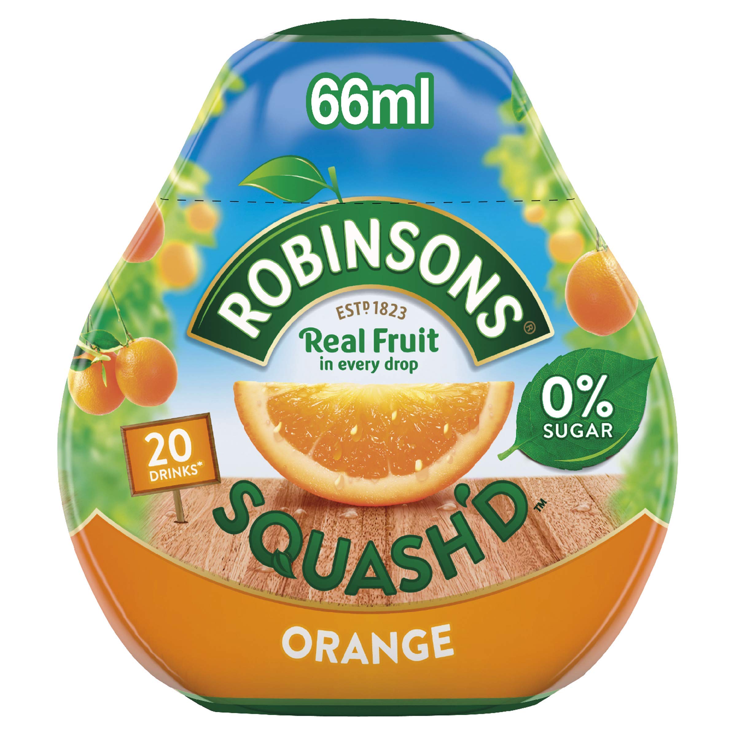 Robinsons Squash'd Orange concentrate is super exciting, super concentrated pumpkin without added sugar. Made with real juice. Simply dilute with water to make up to 20 tasty fruit drinks per 66 ml bottle. It's the perfect drink, wherever you are and whatever you're doing. A small amount has a big effect. One press of water, just enough for the water to change color, is all you need to create a delicious Robinsons drink when you're on the go. It has no artificial colors or flavors. Suitable for vegetarians and therefore the perfect choice for the whole family. INSTRUCTIONS FOR USE Dilute 1 part concentrate with 3 parts water. SAFETY WARNING Please note: do not refill, do not drink undiluted. When diluting for small children, add extra water. Not suitable for children under 36 months. Avoid contact with eyes in case of contact, rinse immediately with water. See moreRobinsons Squash'd Orange Drink, 66ml (20 drankjes) Robinsons Squash'd Orange concentraat is super spannend, super geconcentreerde pompoen zonder toegevoegde suiker. Gemaakt met echt sap. Eenvoudig met water verdunnen om tot 20 lekkere vruchtendranken per 66 ml fles te maken. Het is het perfecte drankje, waar je ook bent en wat je ook doet. Een kleine hoeveelheid heeft een groot effect. Eenmaal in water drukken, net genoeg voor het water om de kleur te veranderen, is alles wat je nodig hebt om een heerlijk Robinsons-drankje te creëren als je onderweg bent. Het heeft geen kunstmatige kleur- of aromastoffen. Geschikt voor vegetariërs en dus de perfecte keuze voor het hele gezin. GEBRUIKSAANWIJZING Verdun 1 deel concentraat met 3 delen water. VEILIGHEIDSWAARSCHUWING Let op: niet bijvullen, niet onverdund drinken. Bij verdunning voor kleine kinderen extra water toevoegen. Niet geschikt voor kinderen onder de 36 maanden. Contact met de ogen vermijden bij contact onmiddellijk met water uitspoelen. Meer bekijken