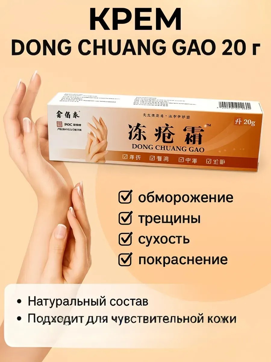 Крем Dong Chuang Gao на основе натуральных экстрактов эффективно борется с обморожениями, сухостью, трещинами, покраснением и раздражением кожи. Идеально подходит для ухода за кожей рук и ног в холодное время года.