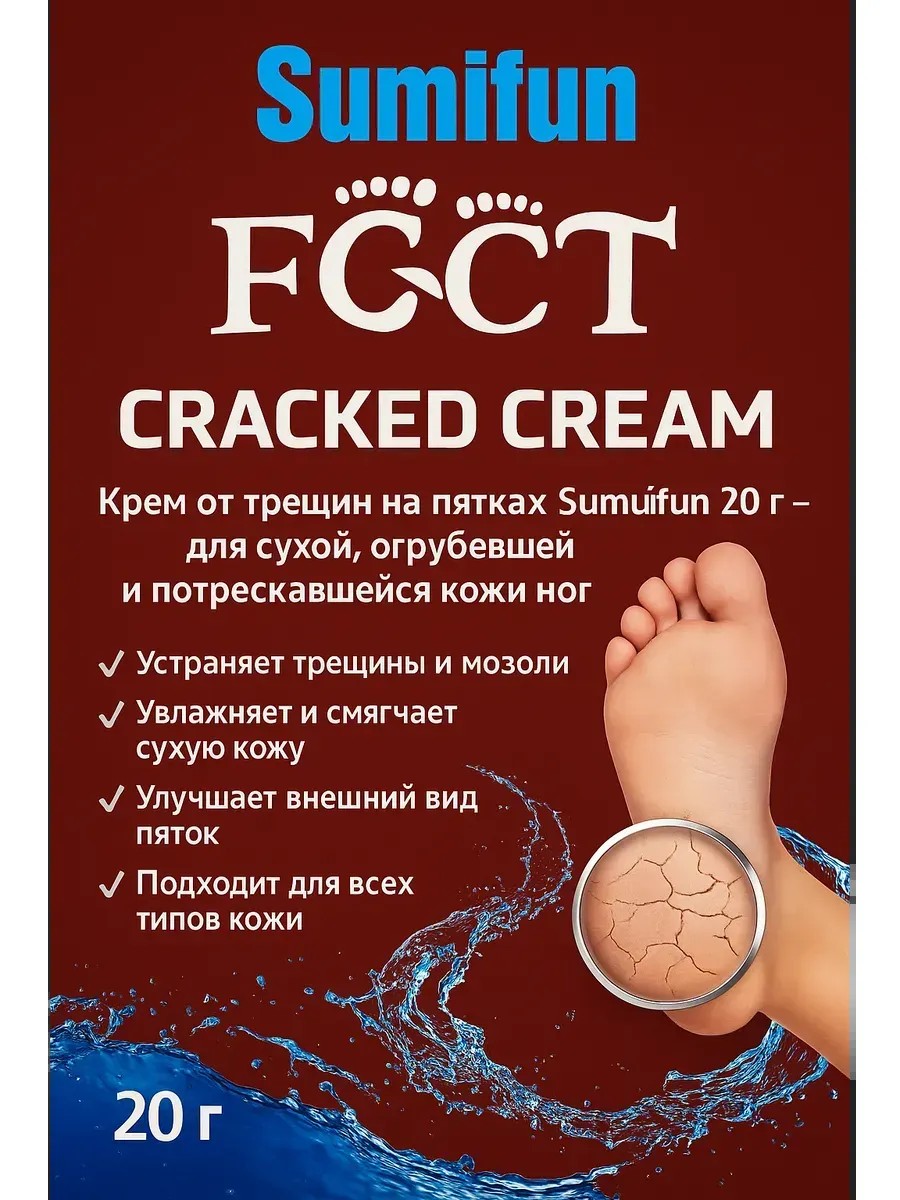 Крем от трещин на пятках Sumifun 20 г — для сухой, огрубевшей и потрескавшейся кожи ног
