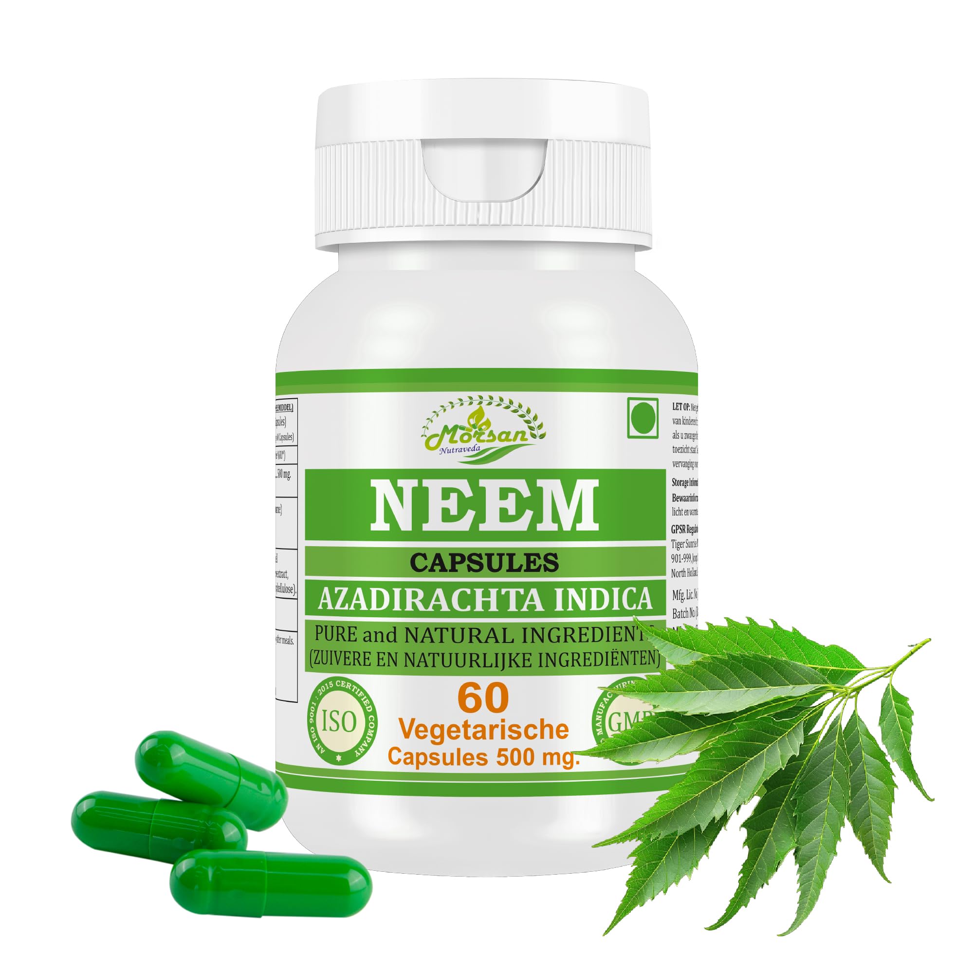 Morsan Nutraveda Neem Capsules are made with carefully selected herbs to promote natural well-being and vitality. Rooted in the wisdom of Ayurveda, these capsules bring you the authentic essence of traditional herbs in a convenient, modern form. Each capsule is prepared with attention to purity and quality, so you receive the natural benefits of neem without compromise. They are designed for people who value a balanced lifestyle and prefer natural choices in their daily routine. Morsan Nutraveda Neem Capsules can be a reliable companion on your journey towards inner balance, energy and overall well-being. Free from artificial additives, they are a simple and effective way to integrate the touch of nature into everyday life. GENERAL INFORMATION Ayurvedic support for vitality INGREDIENTS Take extract 500mg INSTRUCTIONS FOR USE Take 1–2 capsules daily with water, preferably after meals, or as recommended by a health professional. SAFETY WARNING Do not use during pregnancy or lactation without professional medical advice. LEGAL DISCLAIMER This product is a dietary supplement and not a substitute for a varied, balanced diet and a healthy lifestyle. The information provided is for general knowledge only and should not be construed as medical advice. If you have any doubts or health problems, always consult a doctor or qualified healthcare provider. See moreThese claims have not been evaluated by the Food and Drug Administration. This product is not intended to diagnose, treat, cure, or prevent disease. Helps detoxify the body and purify the blood. Supports the functioning of the immune system. Promotes healthy skin and reduces acne naturally.Neem (Azadirachta Indica, Nimba) Capsules 100 Puur Natuurlijk Kruidensupplement Ondersteunt de Huidgezondheid, Bloedzuivering Immuniteit Ayurvedische Wellness (1) Morsan Nutraveda Neem Capsules zijn gemaakt met zorgvuldig geselecteerde kruiden om natuurlijk welzijn en vitaliteit te bevorderen. Geworteld in de wijsheid van Ayurveda, brengen deze capsules u de authentieke essentie van traditionele kruiden in een handige, moderne vorm. Elke capsule is bereid met aandacht voor zuiverheid en kwaliteit, zodat u de natuurlijke weldaad van neem zonder compromissen ontvangt. Ze zijn ontworpen voor mensen die waarde hechten aan een evenwichtige levensstijl en de voorkeur geven aan natuurlijke keuzes in hun dagelijkse routine. Morsan Nutraveda Neem Capsules kunnen een betrouwbare metgezel zijn op uw reis naar innerlijke balans, energie en algeheel welzijn. Vrij van kunstmatige toevoegingen, zijn ze een eenvoudige en effectieve manier om de aanraking van de natuur in het dagelijks leven te integreren. ALGEMENE INFORMATIE Ayurvedische ondersteuning voor vitaliteit INGREDIËNTEN Neem extract 500mg GEBRUIKSAANWIJZING Neem dagelijks 1–2 capsules met water, bij voorkeur na de maaltijd, of zoals aanbevolen door een gezondheidsdeskundige. VEILIGHEIDSWAARSCHUWING Niet gebruiken tijdens zwangerschap of borstvoeding zonder professioneel medisch advies. WETTELIJKE DISCLAIMER Dit product is een voedingssupplement en geen vervanging voor een gevarieerde, evenwichtige voeding en een gezonde levensstijl. De verstrekte informatie is uitsluitend bedoeld ter algemene kennis en mag niet worden opgevat als medisch advies. Raadpleeg bij twijfel of gezondheidsklachten altijd een arts of gekwalificeerde zorgverlener. Meer bekijkenDeze beweringen zijn niet geëvalueerd door de Food and Drug Administration. Dit product is niet bedoeld om ziekten te diagnosticeren, behandelen, genezen of voorkomen. Helpt het lichaam te ontgiften en het bloed te zuiveren. Ondersteunt de werking van het immuunsysteem. Bevordert een gezonde huid en vermindert acne op natuurlijke wijze.