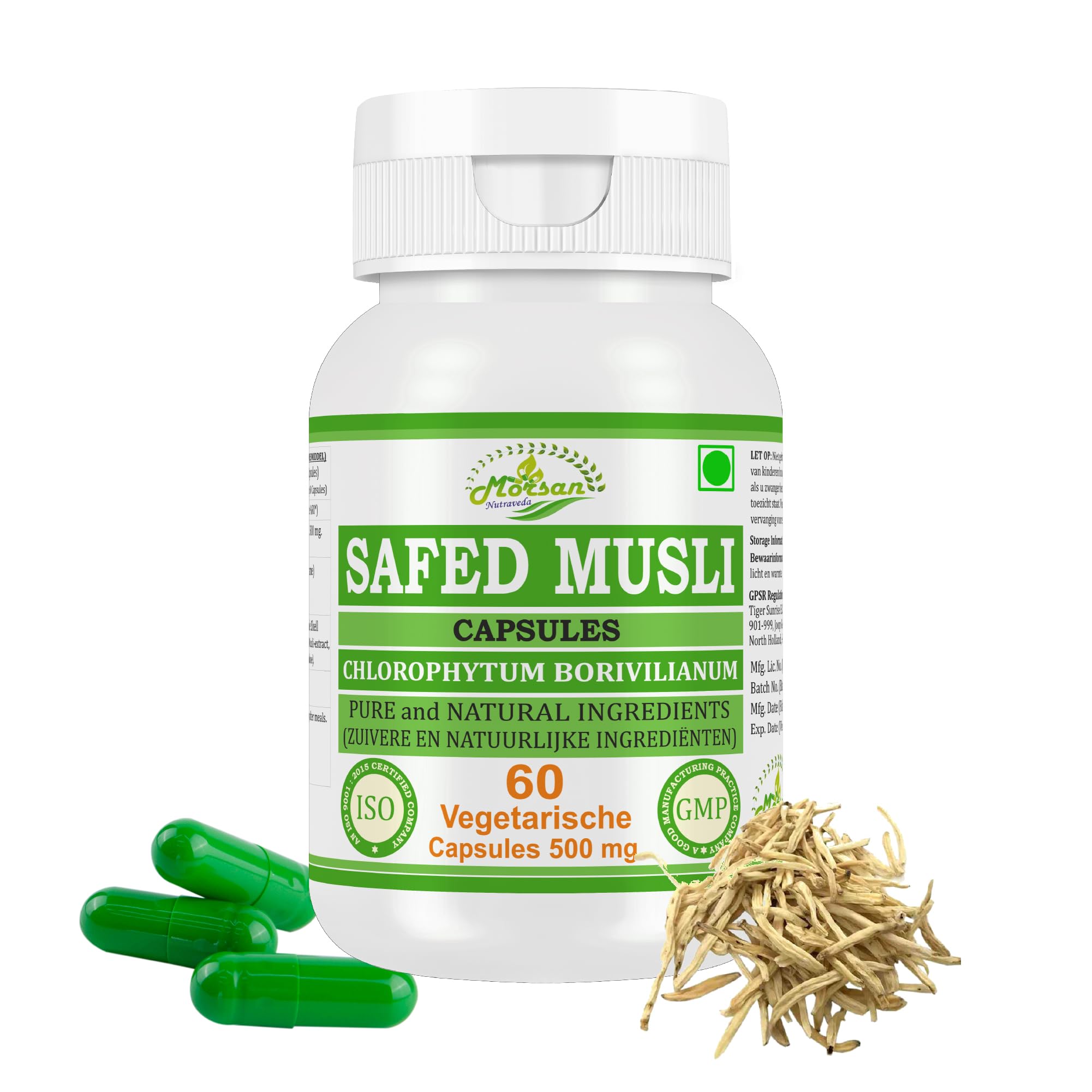 Morsan Nutraveda Safed Musli (Chlorophytum Borivilianum) is a premium herbal supplement designed to support overall health and vitality. Each capsule contains 500 mg of high-quality Safed Musli, a traditional herb known for its potential benefits for general well-being. With 60 capsules per bottle you get a 2 month supply to promote a healthy lifestyle. Our product is completely free of artificial additives, fillers and chemicals, making it a pure, natural choice for those looking to improve their vitality and energy. Safed Musli is often used in herbal medicine for its purported properties, such as increg stamina and promoting overall well-being. Morsan Nutraveda Safed Musli is produced to the highest quality control standards in the Netherlands, ensuring safety, consistency and premium quality in every bottle. GENERAL INFORMATION Ayurvedic support for vitality INGREDIENTS Safed Musli extract 500mg INSTRUCTIONS FOR USE Take 1–2 capsules daily with water, preferably after meals, or as recommended by a health professional. SAFETY WARNING Do not use during pregnancy or breastfeeding without professional medical advice. LEGAL DISCLAIMER This product is a dietary supplement and not a substitute for a varied, balanced diet and a healthy lifestyle. The information provided is for general knowledge only and should not be construed as medical advice. If you have any doubts or health problems, always consult a doctor or qualified healthcare provider. See moreAn ancient herb for modern well-being: Safed Musli has been a prized herb in Ayurveda for generations. Our advanced extraction technology guarantees a highly concentrated nutritional supplement, so you can experience the benefits of this traditional herb in a practical modern form. Purity and Quality Assurance: Morsan Nutraveda's Safed Mosli capsules are free from genetic engineering, gluten-free and free from dairy, yeast, wheat and nuts. Each batch is rigorously tested to meet the highest safety, purity and effectiveness standards. Easy-to-use vegetable capsules: Each bottle contains 60 vegetarian capsules, so you can easily integrate it into your daily life. The plant-based formula is ideal for people with different dietary preferences. Premium Herbal Extract: Our Safed Musli is extracted from carefully selected chlorophytum-arundinaceum roots for maximum efficacy and purity. The nutritional supplement is free from artificial additives, fillers and preservatives and provides a pure and natural herbal experience. The power of nature in every capsule: Morsan Nutraveda Safed Musli (Chlorophytum Arundinaceum) capsules deliver a highly effective 10:1 extract, which corresponds to 5,000 mg of raw Safed Musli per 500 mg capsule and thus guarantees a concentrated and effective herbal supplement.Safed Musli (Chlorophytum Borivilianum) - 500mg, 60 Capsules Kruiden Supplement (1) Morsan Nutraveda Safed Musli (Chlorophytum Borivilianum) is een premium kruidensupplement, ontworpen om de algehele gezondheid en vitaliteit te ondersteunen. Elke capsule bevat 500 mg hoogwaardige Safed Musli, een traditioneel kruid dat bekend staat om de potentiële voordelen voor het algemene welzijn. Met 60 capsules per fles krijgt u een voorraad van 2 maanden om een gezonde levensstijl te bevorderen. Ons product is volledig vrij van kunstmatige toevoegingen, vulstoffen en chemicaliën, waardoor het een pure, natuurlijke keuze is voor wie zijn vitaliteit en energie wil verbeteren. Safed Musli wordt vaak gebruikt in de kruidengeneeskunde vanwege de vermeende eigenschappen, zoals het verhogen van het uithoudingsvermogen en het bevorderen van het algehele welzijn. Morsan Nutraveda Safed Musli wordt geproduceerd volgens de hoogste kwaliteitscontrole-normen in Nederland, wat zorgt voor veiligheid, consistentie en premium kwaliteit in elke fles. ALGEMENE INFORMATIE Ayurvedische ondersteuning voor vitaliteit INGREDIËNTEN Safed Musli extract 500mg GEBRUIKSAANWIJZING Neem dagelijks 1–2 capsules met water, bij voorkeur na de maaltijd, of zoals aanbevolen door een gezondheidsdeskundige. VEILIGHEIDSWAARSCHUWING Do not use during pregnancy or breastfeeding without professional medical advice. WETTELIJKE DISCLAIMER Dit product is een voedingssupplement en geen vervanging voor een gevarieerde, evenwichtige voeding en een gezonde levensstijl. De verstrekte informatie is uitsluitend bedoeld ter algemene kennis en mag niet worden opgevat als medisch advies. Raadpleeg bij twijfel of gezondheidsklachten altijd een arts of gekwalificeerde zorgverlener. Meer bekijkenEen oud kruid voor modern welzijn: Safed Musli is al generaties lang een gewaardeerd kruid in de Ayurveda. Onze geavanceerde extractietechnologie garandeert een sterk geconcentreerd voedingssupplement, zodat u de voordelen van dit traditionele kruid in een praktische moderne vorm kunt ervaren. Zuiverheid en kwaliteitsborging: de Safed Mosli-capsules van Morsan Nutraveda zijn vrij van genetische manipulatie, glutenvrij en vrij van zuivelproducten, gist, tarwe en noten. Elke batch wordt streng getest om aan de hoogste veiligheids-, zuiverheids- en effectiviteitsnormen te voldoen. Eenvoudig te gebruiken plantaardige capsules: elke fles bevat 60 vegetarische capsules, zodat je hem gemakkelijk in je dagelijks leven kunt integreren. De plantaardige formule is ideaal voor mensen met verschillende voedingsvoorkeuren. Premium kruidenextract: onze Safed Musli wordt gewonnen uit zorgvuldig geselecteerde chlorophytum-arundinaceum-wortels voor maximale werkzaamheid en zuiverheid. Het voedingssupplement is vrij van kunstmatige additieven, vulstoffen en conserveringsmiddelen en biedt een zuivere en natuurlijke kruidenervaring. De kracht van de natuur in elke capsule: Morsan Nutraveda Safed Musli (Chlorophytum Arundinaceum) capsules leveren een zeer effectief 10:1-extract, dat overeenkomt met 5.000 mg rauwe Safed Musli per 500 mg capsule en dus een geconcentreerd en effectief kruidensupplement garandeert.