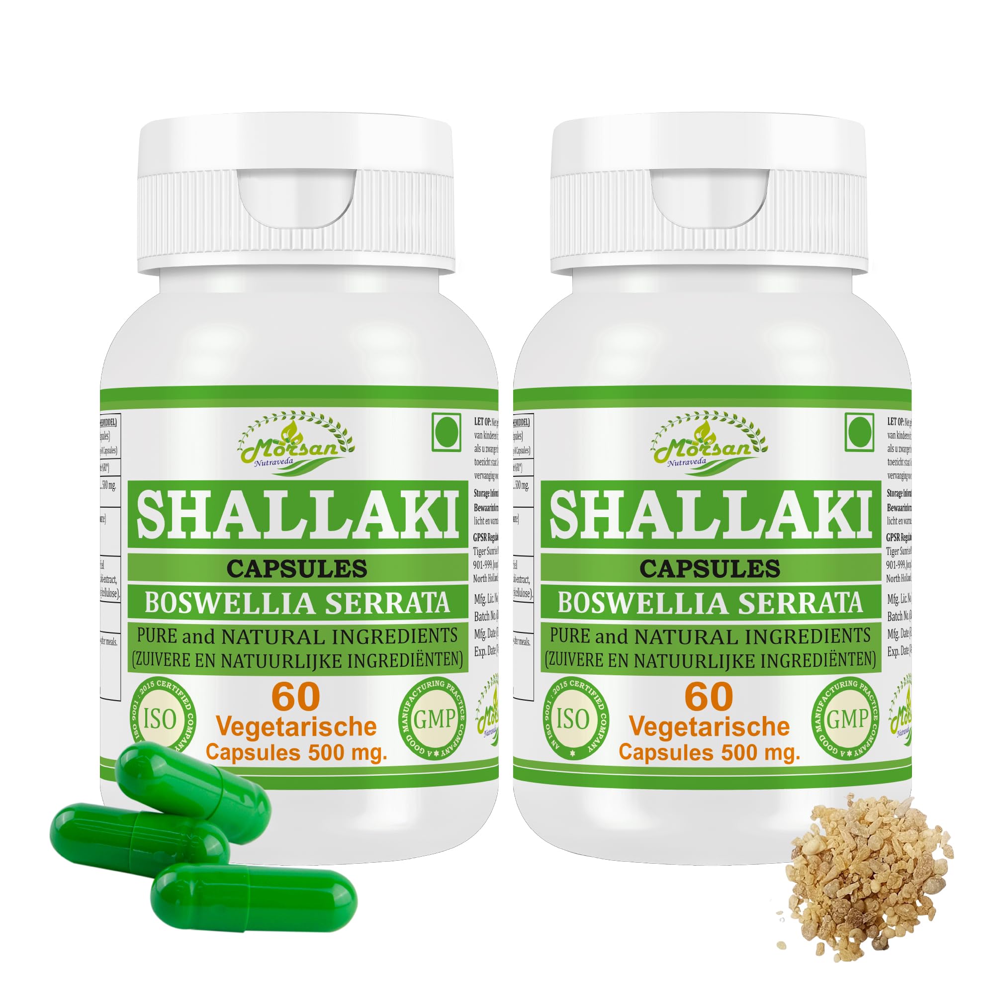 Morsan Nutraveda Shallaki Capsules are made with carefully selected herbs to promote natural well-being and vitality. Rooted in the wisdom of Ayurveda, these capsules bring you the authentic essence of traditional herbs in a convenient, modern form. Each capsule is prepared with attention to purity and quality, so you receive the natural benefits of shallaki without compromise. They are designed for people who value a balanced lifestyle and prefer natural choices in their daily routine. Morsan Nutraveda Shallaki Capsules can be a reliable companion on your journey towards inner balance, energy and overall well-being. Free from artificial additives, they are a simple and effective way to integrate the touch of nature into everyday life. GENERAL INFORMATION Ayurvedic support for vitality INGREDIENTS Boswellia Serrata extract 500mg INSTRUCTIONS FOR USE Take 1–2 capsules daily with water, preferably after meals, or as recommended by a health professional. SAFETY WARNING Do not use during pregnancy or lactation without professional medical advice. LEGAL DISCLAIMER This product is a dietary supplement and not a substitute for a varied, balanced diet and a healthy lifestyle. The information provided is for general knowledge only and should not be construed as medical advice. If you have any doubts or health problems, always consult a doctor or qualified healthcare provider. See moreThese claims have not been evaluated by the Food and Drug Administration. This product is not intended to diagnose, treat, cure, or prevent disease. Promotes flexibility and comfort. Helps maintain healthy inflammation levels. Supports joint health and mobility.Shallaki (Boswellia Serrata) Capsules 100 puur en natuurlijk kruidensupplement Ondersteunt de gezondheid, flexibiliteit en kracht van gewrichten Ayurvedische wellness (2) Morsan Nutraveda Shallaki Capsules zijn gemaakt met zorgvuldig geselecteerde kruiden om een natuurlijk welzijn en vitaliteit te bevorderen. Geworteld in de wijsheid van Ayurveda, brengen deze capsules u de authentieke essentie van traditionele kruiden in een handige, moderne vorm. Elke capsule is bereid met aandacht voor zuiverheid en kwaliteit, zodat u de natuurlijke weldaad van shallaki zonder compromissen ontvangt. Ze zijn ontworpen voor mensen die waarde hechten aan een evenwichtige levensstijl en de voorkeur geven aan natuurlijke keuzes in hun dagelijkse routine. Morsan Nutraveda Shallaki Capsules kunnen een betrouwbare metgezel zijn op uw reis naar innerlijke balans, energie en algeheel welzijn. Vrij van kunstmatige toevoegingen, zijn ze een eenvoudige en effectieve manier om de aanraking van de natuur in het dagelijks leven te integreren. ALGEMENE INFORMATIE Ayurvedische ondersteuning voor vitaliteit INGREDIËNTEN Boswellia Serrata extract 500mg GEBRUIKSAANWIJZING Neem dagelijks 1–2 capsules met water, bij voorkeur na de maaltijd, of zoals aanbevolen door een gezondheidsdeskundige. VEILIGHEIDSWAARSCHUWING Niet gebruiken tijdens zwangerschap of borstvoeding zonder professioneel medisch advies. WETTELIJKE DISCLAIMER Dit product is een voedingssupplement en geen vervanging voor een gevarieerde, evenwichtige voeding en een gezonde levensstijl. De verstrekte informatie is uitsluitend bedoeld ter algemene kennis en mag niet worden opgevat als medisch advies. Raadpleeg bij twijfel of gezondheidsklachten altijd een arts of gekwalificeerde zorgverlener. Meer bekijkenDeze beweringen zijn niet geëvalueerd door de Food and Drug Administration. Dit product is niet bedoeld om ziekten te diagnosticeren, behandelen, genezen of voorkomen. Bevordert flexibiliteit en comfort. Helpt een gezond ontstekingsniveau te behouden. Ondersteunt de gezondheid van gewrichten en mobiliteit.