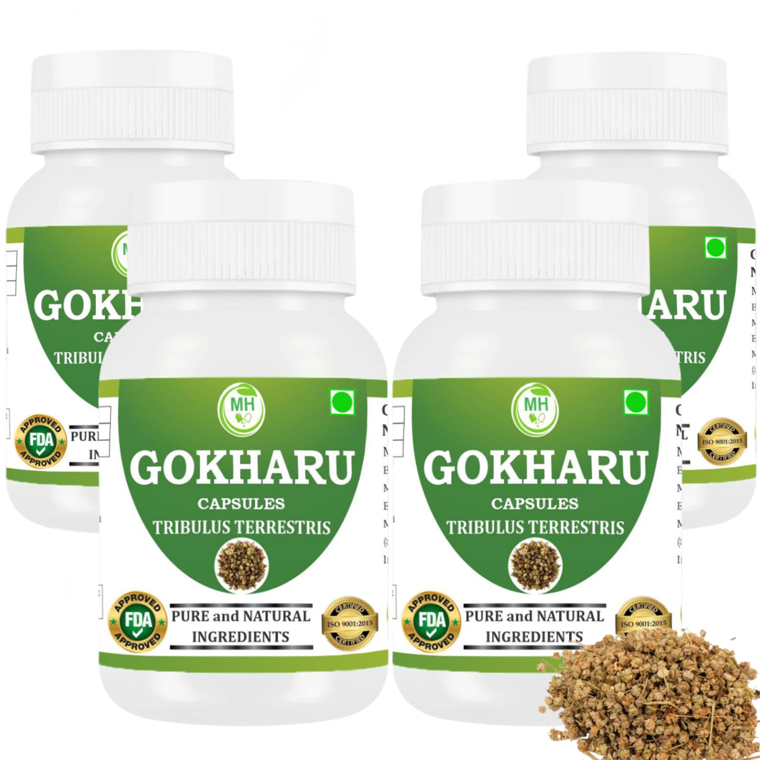 Morsan's Gokharu (Tribulus terrestris) Capsules Pack of 4 x 60 x 500 mg. Veg. Capsules (4) 60 Count (Pack of 4)
