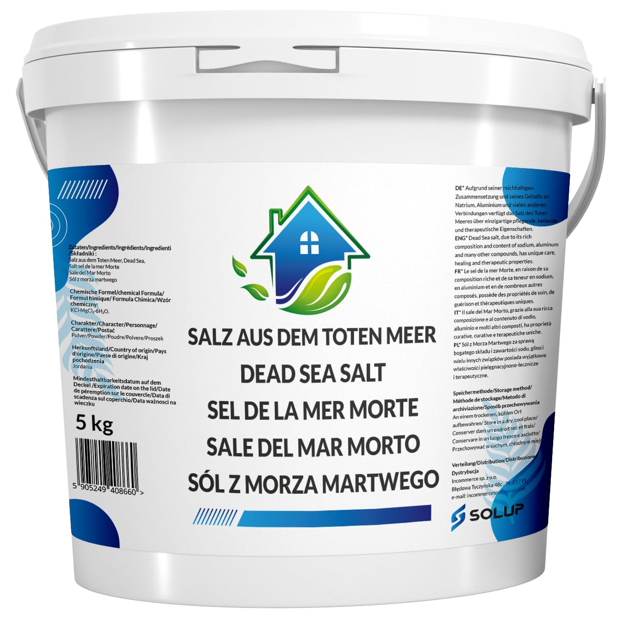 Morte Meer Sel de bain naturel pour bain de pieds - Seau de 5 kg - Bienfaisant en cas d'irritations de la peau