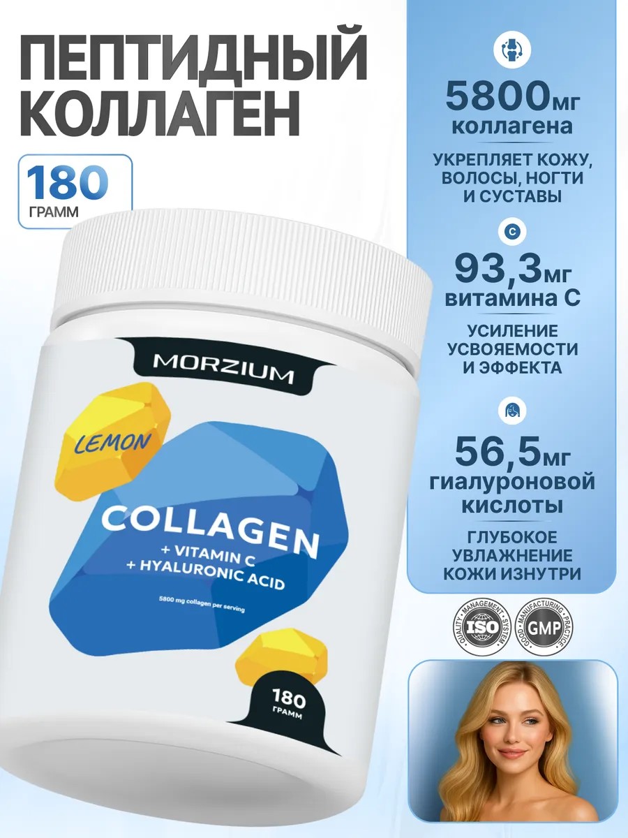 Коллаген с гиалуроновой кислотой и витамином С от Morzium – это высококачественная пищевая добавка, созданная для восстановления и поддержания красоты кожи, волос и ногтей, без лишних усилий!