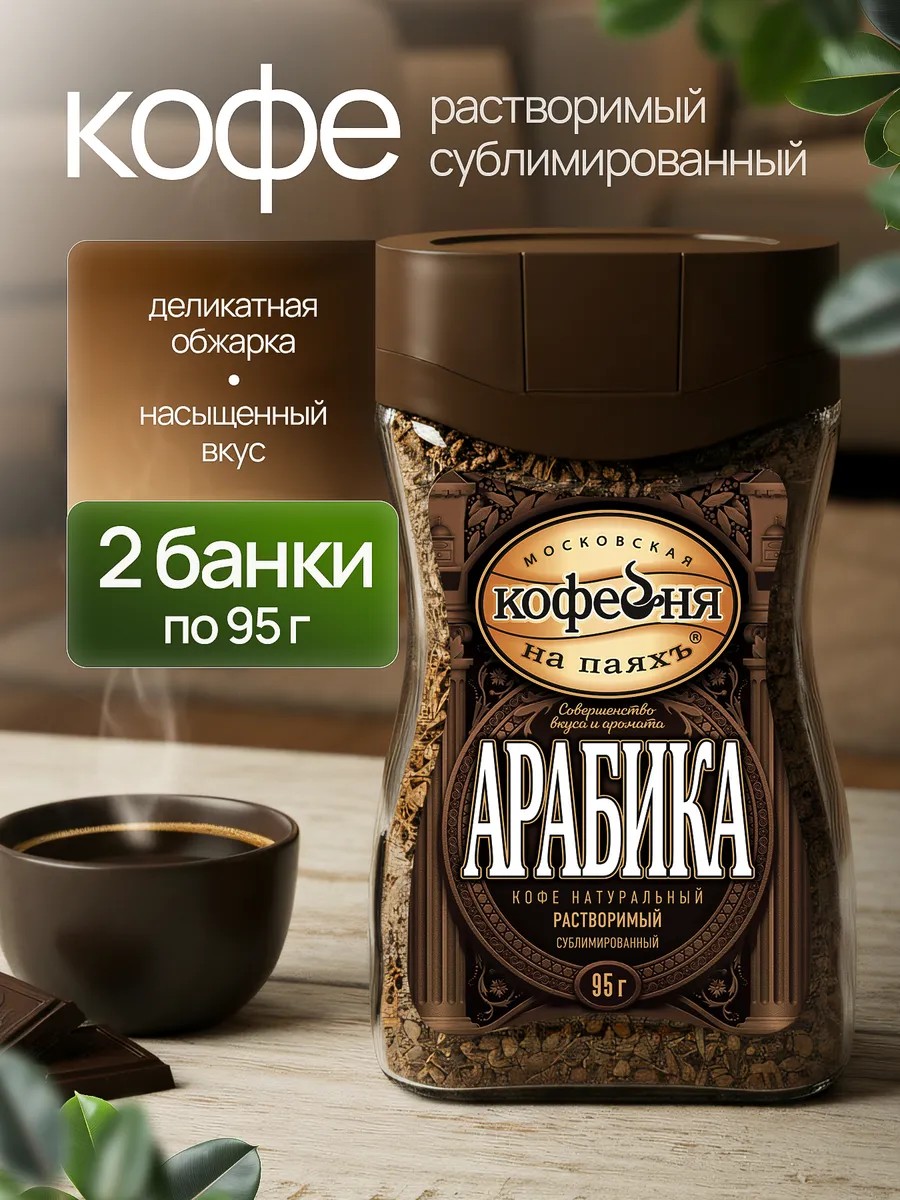 | Полное наименование товара | Кофе Арабика Московская кофейня на паяхъ 2 стеклянные банки 95 г |