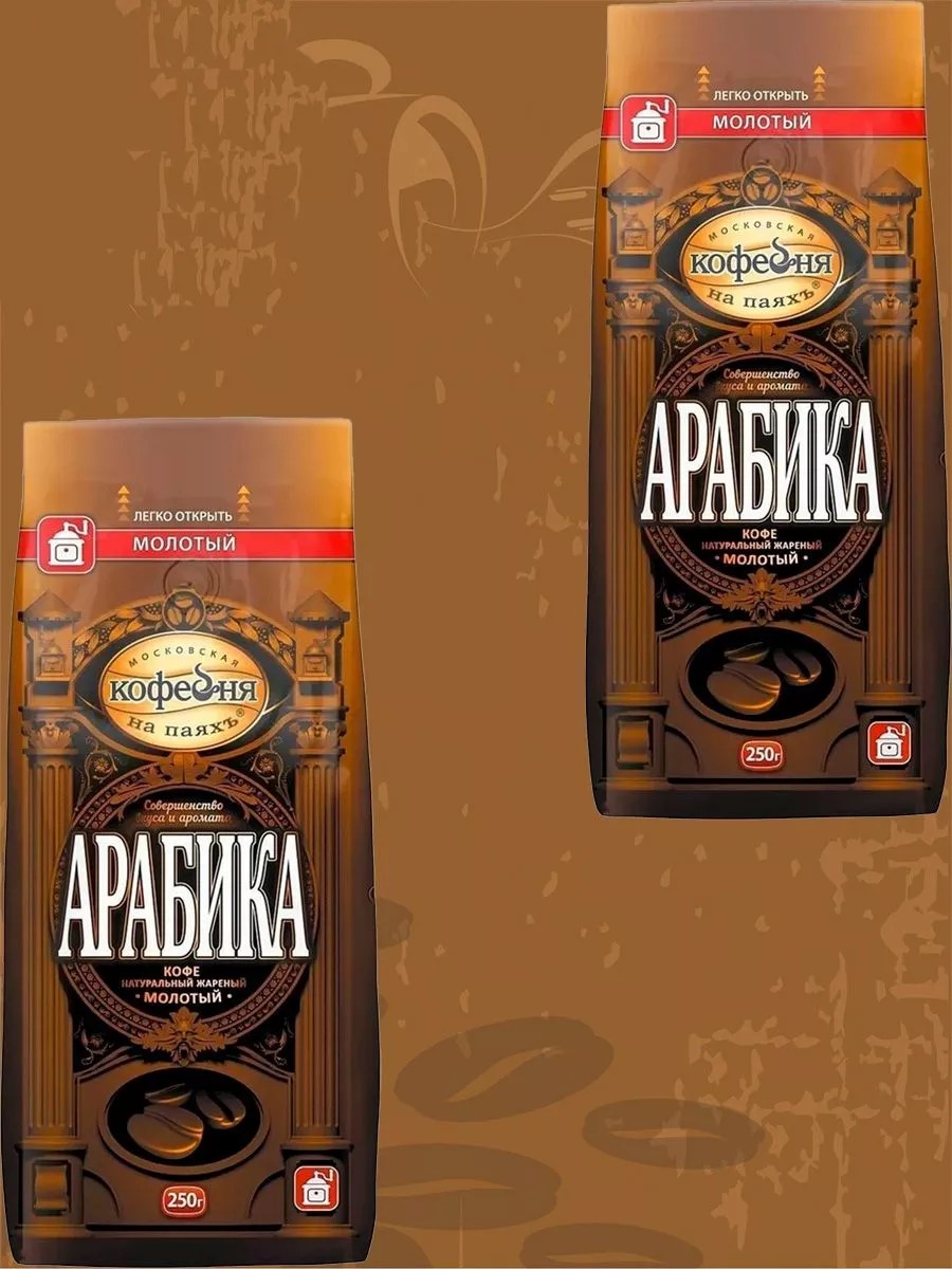 Московская Кофейня на Паяхъ Кофе молотый МКП Арабика, 2 пачки по 250 г