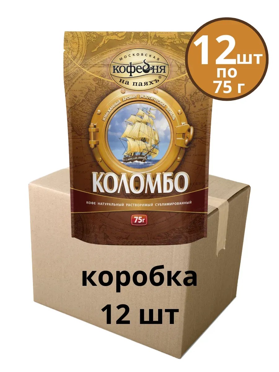 МОСКОВСКАЯ КОФЕЙНЯ НА ПАЯХЪ Кофе растворимый Коломбо, 12 пакетов по 75 г