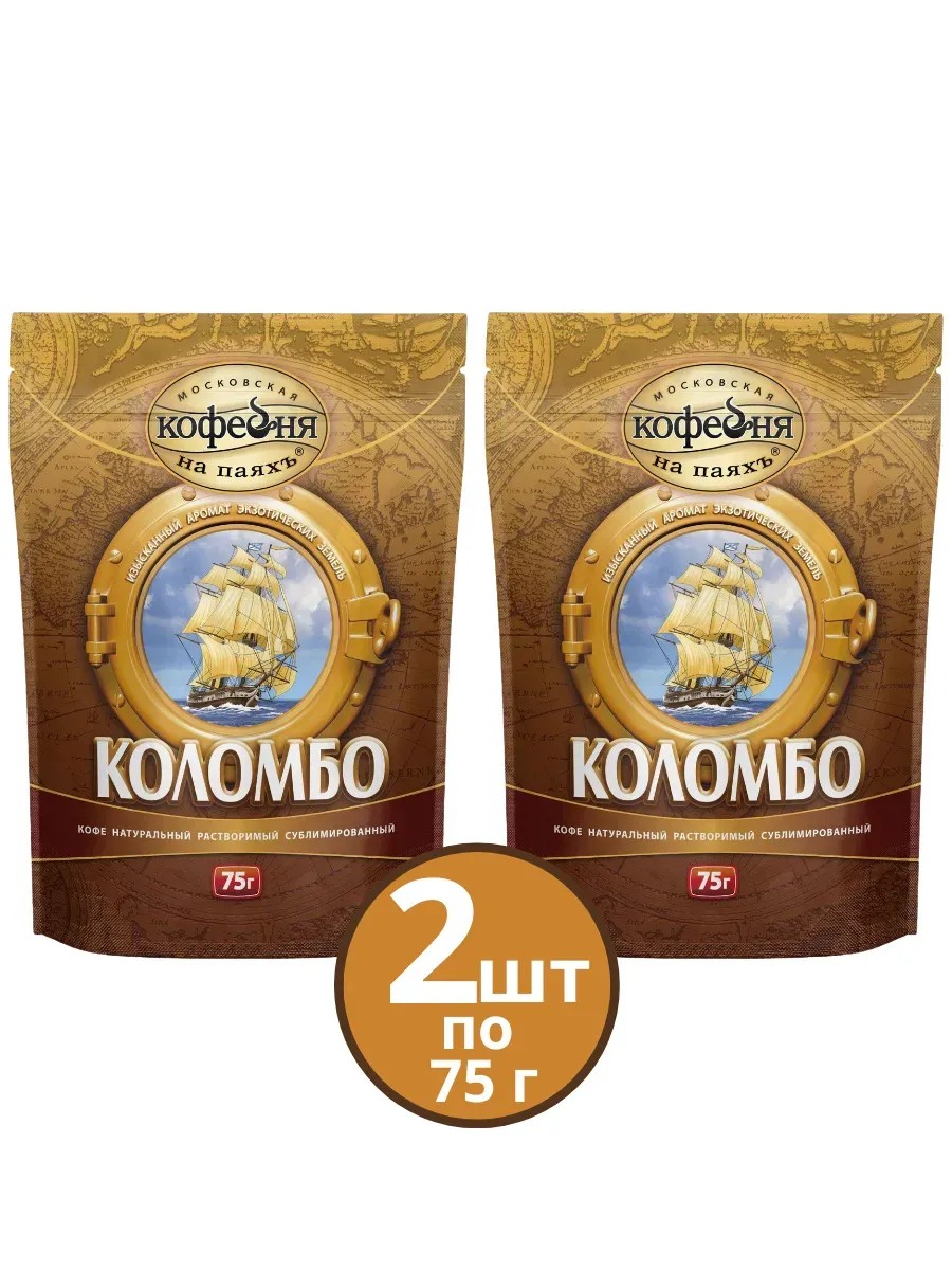 МОСКОВСКАЯ КОФЕЙНЯ НА ПАЯХЪ Кофе растворимый Коломбо, 2 пакета по 75 г