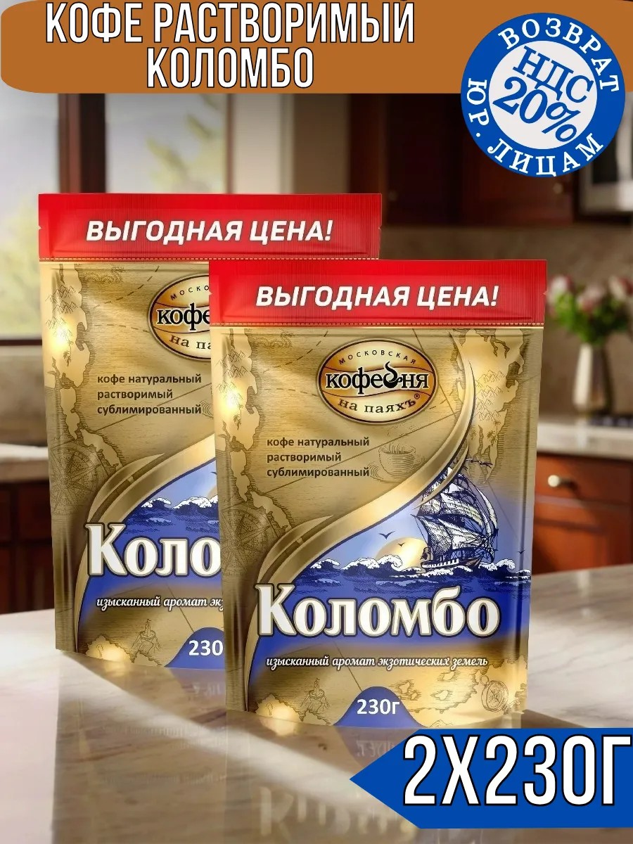 МОСКОВСКАЯ КОФЕЙНЯ НА ПАЯХЪ Кофе растворимый сублимированный Коломбо 460г (2шт по 230г)