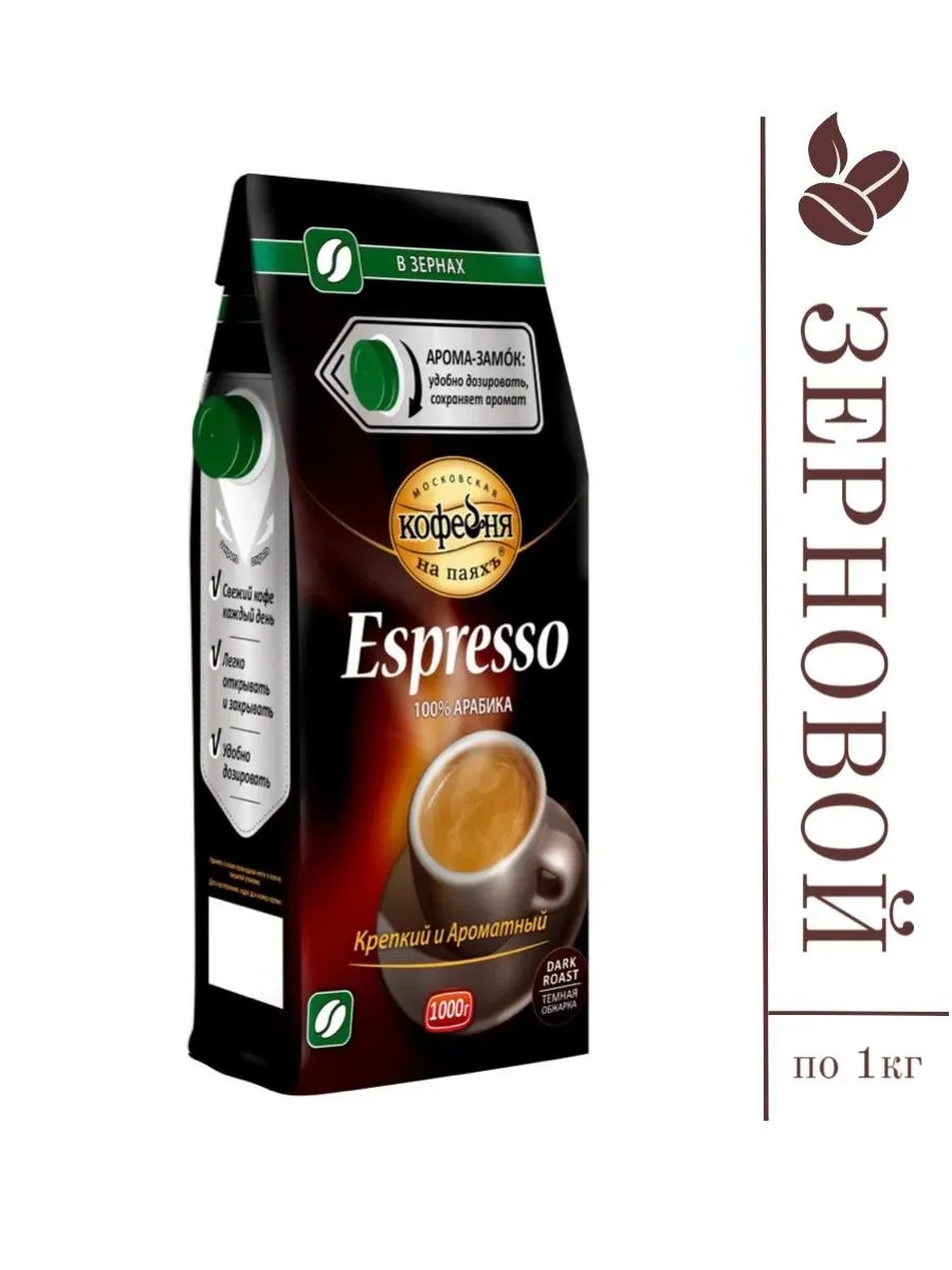 МОСКОВСКАЯ КОФЕЙНЯ НА ПАЯХЪ Кофе в зернах Espresso 1000 грамм
