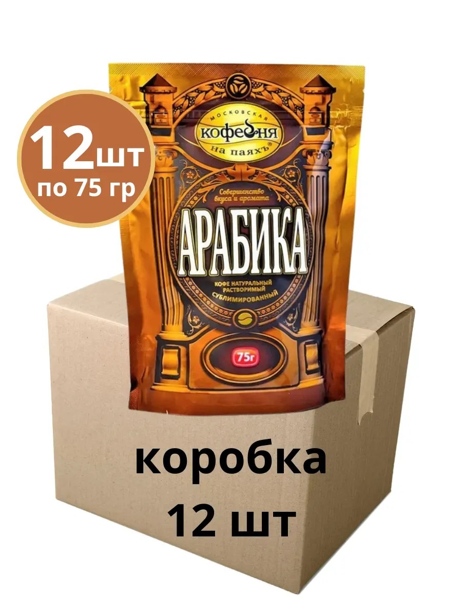 МОСКОВСКАЯ КОФЕЙНЯ НА ПАЯХЪ Кофе растворимый Арабика, 12 пакетов по 75 гр