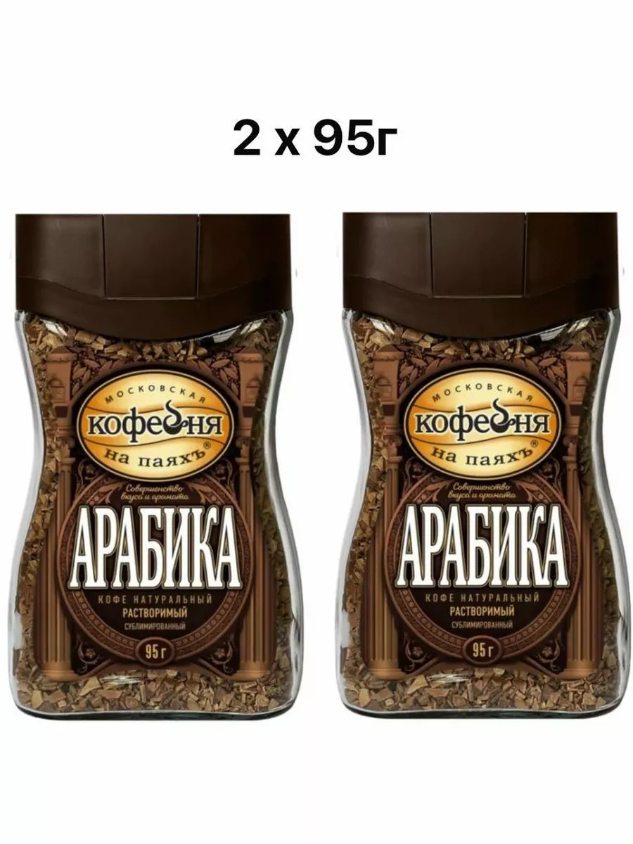 Кофе натуральный растворимый сублимированный Московская кофейня на паяхь Арабика в стеклянной банке. Приготовлен исключительно из премиальных сортов Арабики. Богатый аромат, насыщенный вкус и продолжительное послевкусие.