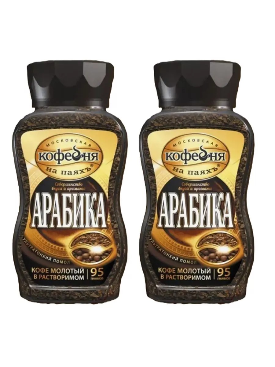 МОСКОВСКАЯ КОФЕЙНЯ НА ПАЯХЪ Кофе растворимый МКП Арабика с добавлением мол.кофе, 95г*2шт