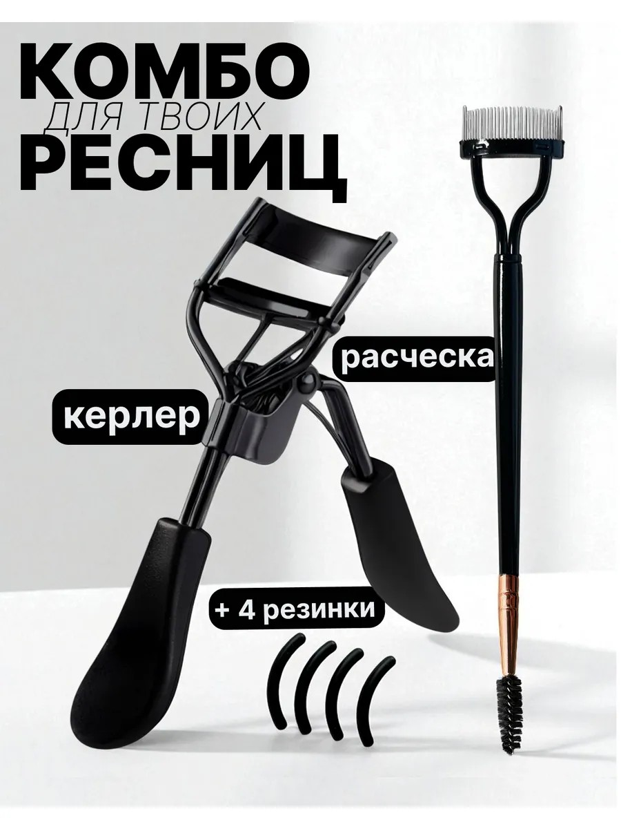 This eyelash curler set with a comb and replaceable elastic bands is everything you need for a beautiful, wide-open look! The eyelash curler shapes and curls lashes, making it easy to apply mascara and other makeup products. This eyelash curler set includes a curling iron, a dual-ended comb, and four replaceable pads. This set makes a wonderful gift for any occasion—birthdays, New Years, February 14th, and March 8th. This eyelash accessory set will transform your lashes into luxurious fans! The curler has comfortable rubberized handles for a comfortable grip when curling. The mechanism always works flawlessly, without jamming. The curler is durable and high-quality, and will serve you for years to come. The curl stays in place all day without sagging. These eyelash curlers are made of hypoallergenic stainless steel, making them moisture- and corrosion-resistant, non-irritating, and completely safe. The curler helps you create a beautiful curl, while the comb separates your lashes before and after applying mascara. The brush can be used for both eyelashes and eyebrows. Four replacement eyelash curlers are included, ensuring long-lasting use. This set is suitable for both professional makeup artists in beauty salons and everyday users. For stunning results, use the curler only on dry, clean lashes! Hold the curler for about 10 seconds—this is enough time for the lashes to curl. Just a few seconds will give you long, voluminous, and luscious lashes! A real lifesaver for straight or stubborn lashes. The curler is easy to care for and easily removes makeup residue under running water. The elegant design is pleasing to the eye and will make this elegant item a true vanity centerpiece. This eyelash curler won't scratch or chew your eyelids, so even a teenage girl can use it. Keller will become an indispensable assistant.