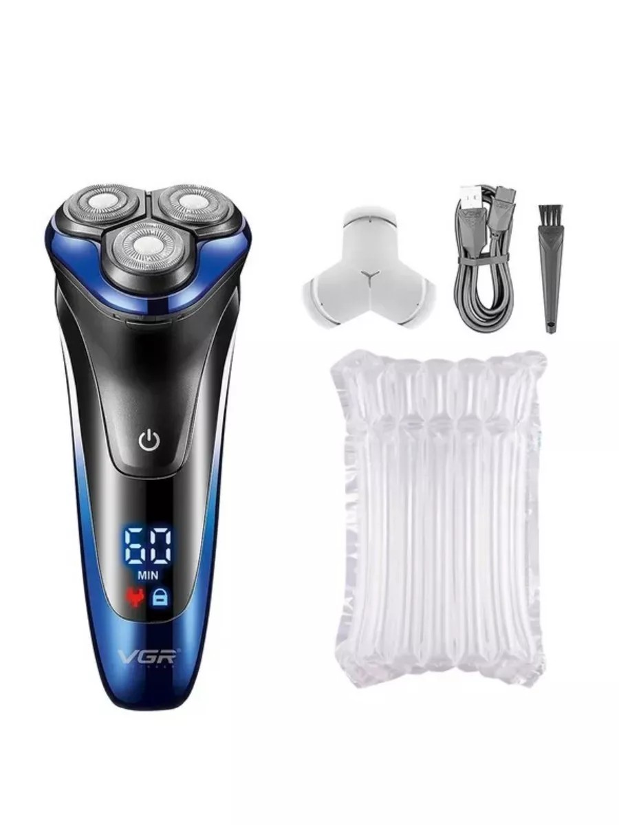 Водонепроницаемая аккумуляторная электробритва V-387 позволит Вам бриться стоя под теплыми струями душа. Три плавающих головки подстраиваются под контуры лица, не повреждают кожу. После бритья их защитные сеточки открываются и промываются водой. С обратной стороны бритвы размещен триммер, который открывается легким нажатием. Вы всегда сможете подровнять контуры висков, усы, бороду