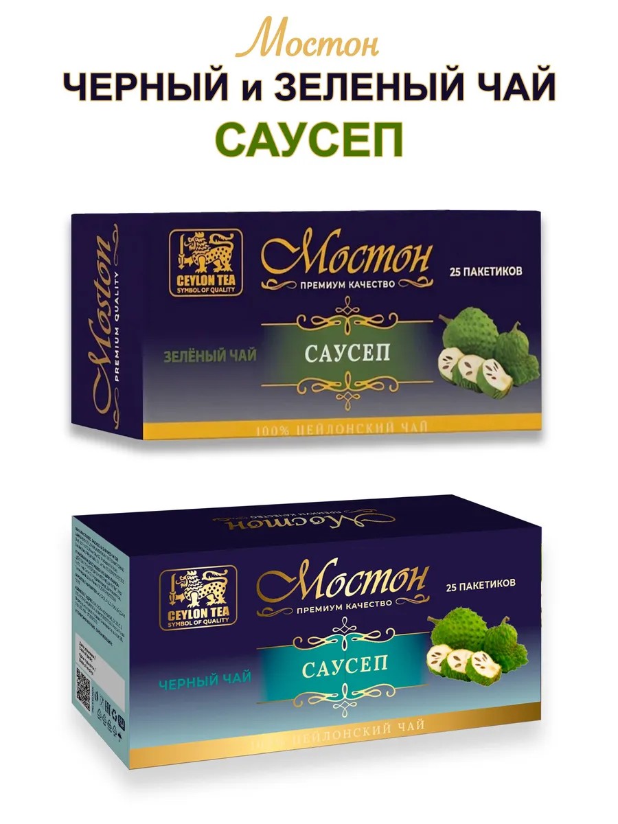 | Комплектация | MOSTON Чёрный и зеленый чай со вкусом саусеп по 25 пакетиков - 2 пачки |