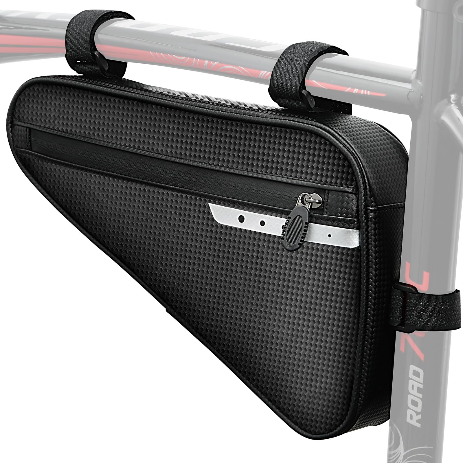 Large memoryLarge enough to keep all your tools and necessary things, spacious storage bags to keep your phone, headphones and money clip.The inner mesh pocket-based design enables you to save small items such as keys, bank cards, etc. so that you can easily find them.Portable bicycle triangle pocketFrame pocket bike only 0.42lb, a total of 1.7l space for everyday use that could stay out of the way while kicking thanks to its perfect slim design.It does not block the use of the water mug holder on the bike.Easy to install and removeBicycle bag frame bag has 3 straps for easy installation on a bicycle tube.You can cut the fastenings if necessary to perfectly adapt this bicycle frame bag to your bicycle frame.Most mountain, street and commuter wheels fits for the bicycle.Reflective designNot only attractive in appearance, but also safer when driving at night - our frame pocket bike waterproof is designed with a reflective band on the side that could create the reflected light beam in order to fulfill the warning function and the safety of cycliststo protect in the dark.High -quality material waterproofMade of hard -wearing and waterproof carbon fiber material and constructs with a waterproof protected zipper, our bicycle bag offers your things to your things the optimal protection against bumps or terrible weather.And also easy to clean - just wipe it off with a damp towel and the bicycle frame bag is like new again.Großer SpeicherGroß genug, um alle Ihre Werkzeuge und notwendigen Dinge zu halten, geräumige Aufbewahrungstasche, um Ihr Telefon, Kopfhörer und Geldclip zu halten. Das innere Mesh-Taschenfach-Design ermöglicht es Ihnen, kleine Gegenstände wie Schlüssel, Bankkarten usw. zu speichern, so dass Sie sie leicht finden können. Tragbare Fahrrad-DreieckstascheRahmentasche fahrrad nur 0.42lb, insgesamt 1.7L Platz für den täglichen Gebrauch, die aus dem Weg bleiben könnte, während das Treten dank seiner perfekten schlanken Design. Es blockiert nicht die Verwendung des Wasserbecherhalters am fahrrad. Leicht zu Installieren und zu EntfernenFahrradtasche rahmentasche hat 3 Riemen für die einfache Installation auf Fahrradrohr. Sie können die Befestigungen bei Bedarf schneiden, um diese fahrradrahmen tasche perfekt an Ihren Fahrradrahmen anzupassen. passt für die fahrrad meisten Berg-, Straßen- und Pendlerräder. Reflektierendes DesignNicht nur attraktiv im Aussehen, sondern auch sicherer bei Fahrten in der Nacht - Unsere rahmentasche fahrrad wasserdicht ist mit einem reflektierenden Band an der Seite entworfen, das den reflektierten Lichtstrahl erzeugen könnte, um die Warnfunktion zu erfüllen und die Sicherheit der Radfahrer in der Dunkelheit zu schützen. Hochwertiges Material WasserdichtigkeitHergestellt aus strapazierfähigem und wasserfestem Kohlefasermaterial und konstruiert mit einem wasserdichten geschützten Reißverschluss, bietet unsere fahrradtasche rahmen Ihren Sachen im Inneren den optimalen Schutz vor Stößen oder schrecklichem Wetter. Und auch leicht zu reinigen - einfach mit einem feuchten Handtuch abwischen und die fahrrad rahmentasche ist wieder wie neu.MOSUO Rahmentasche Fahrrad 1.7L Fahrradtasche Rahmen Wasserdicht,Dreiecktasche Werkzeugtasche Mit Reflektoren Und Fächern, Für Fahrrad, MTB, Rennrad BikeFrameBag-02