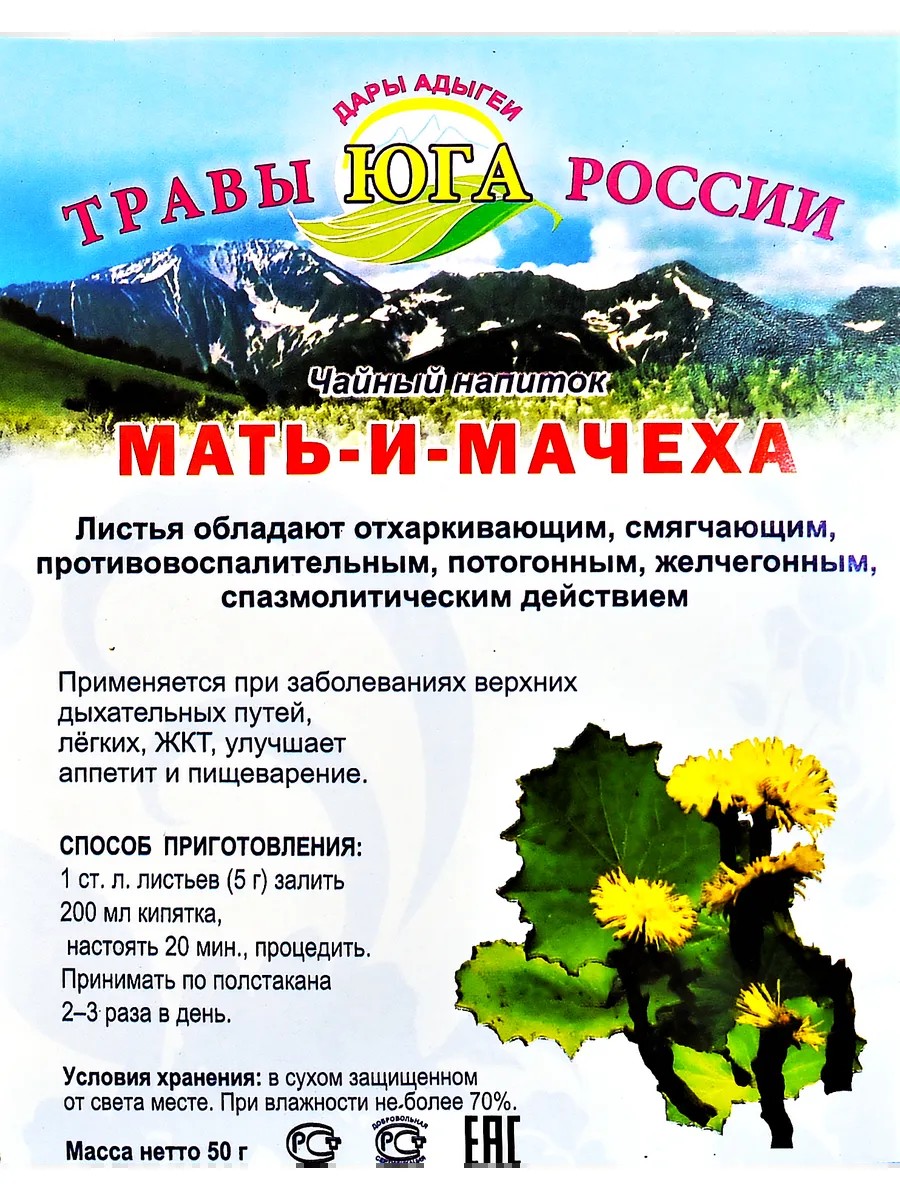 | Состав травяного сбора | 100% Мать и мачеха листья |