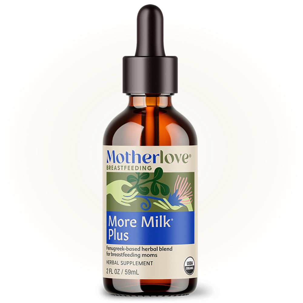Motherlove Difference: More Milk Plus is Organic, Kosher Certified by Kof-K, and is made in the USA with imported ingredients. Manufactured in an NSF-registered GMP facility. Motherlove is a certified Women-Owned B-Corp that focuses on environmental and social sustainability. Suggested Use: 4–6 droppersful per day. Spreading doses out throughout the day is the most important thing, such as taking each dose at a meal time or other easy-to-remember moment throughout your day. This bottle lasts roughly 2 weeks. Traditional Tincture: This organic breastfeeding supplement is a concentrated herbal extract in a traditional tincture. The taste of tinctures is strong, adding each dose to a drink or food can help mask the flavor. A ring of herbal sediment in the dropper is normal, just give it a shake!. Organic Herbs: Fenugreek seed, blessed thistle, nettle, and fennel are blended together to create this lactation supplement for nursing and pumping moms. Support Your Supply: More Milk Plus has been helping breastfeeding moms support their breast milk supply since the first time mom jeans were cool.