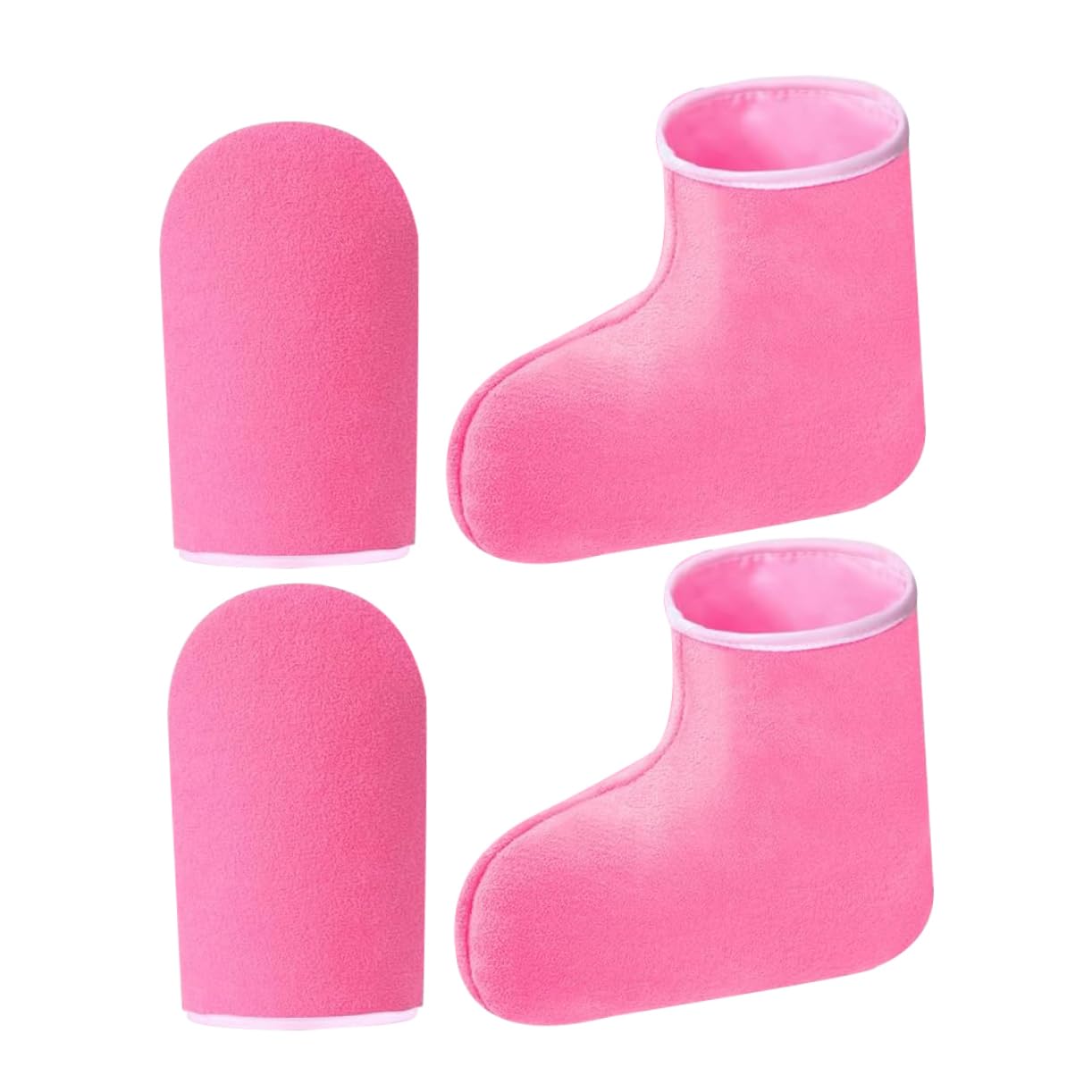 The package includes 1 pair of paraffin wax mitts. Features: - Comfortable treatment: Enjoy a comfortable and relaxing treatment with these paraffin wax mitts, improving your overall well-being. - Size: 25.50 x 15.50 x 0.20 cm (mittens) for paraffin therapy - User-friendly design: The entire paraffin wax machine set is designed to be user-friendly, making the process simple and saving time. -Size: 27.30 x 20.30 x 0.20 cm (paraffin hand spa booties) -Versatile application: Suitable for both professional and home use, these are ideal for hand and foot care, providing paraffin wax hand and foot treatments -Material: Polyester and paraffin wax foot wraps -Nourishing care: These provide nourishing care, treating dryness and roughness, leaving your hands soft and smooth. Insulated paraffin hand wraps -Color: Pink paraffin hand wraps Product information: The kit includes a paraffin wax warmer, insulated hand wraps, and paraffin wax, designed to provide a soothing and moisturizing treatment. It is intended for use in beauty salons or at home, helping to rejuvenate the skin, leaving it soft and supple. Paraffin Wax Spa Accessories This paraffin wax therapy set is ideal for those seeking a complete hand and foot care solution