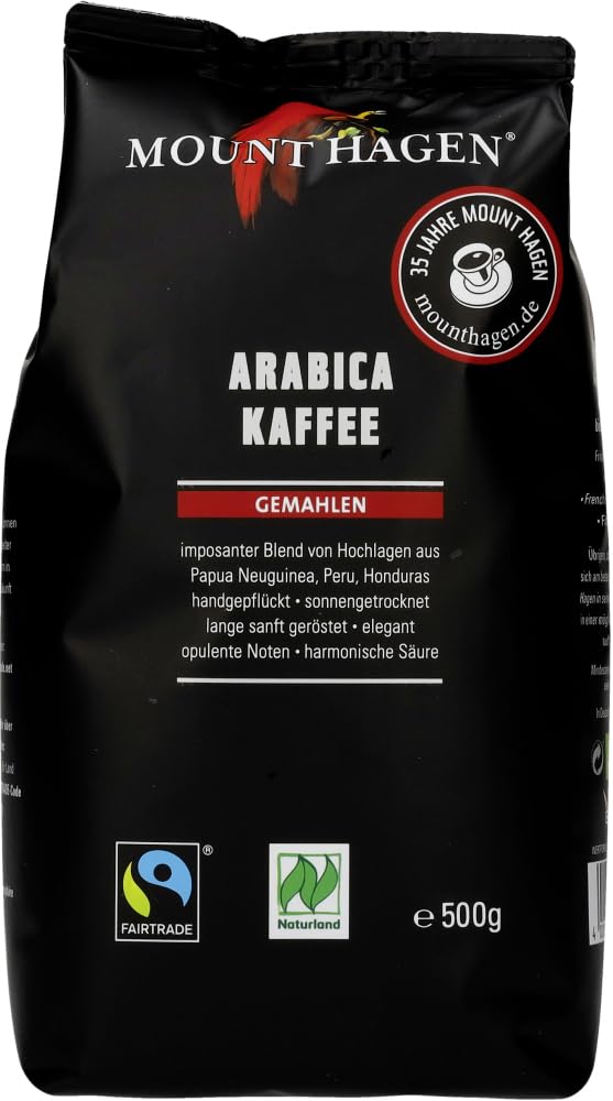 Processing: Ground roasted Arabica coffee, nitrogen processing additives, Fairtrade certified, EU organic label INGREDIENTS 100 Roasted Coffee from organic farming, Fairtrade certified SAFETY WARNING Allergy Information: NO (without testing): cereals containing gluten, wheat, spelt, rye, barley, oats, other cereals containing gluten, crustaceans, eggs, fish, peanuts, soy, milk, lactose, tree nuts, almonds, hazelnuts, walnuts, cashews, pecans, Brazil nuts, pistachios, macadamia nuts, celery, mustard, sesame, sulfites, lupin, molluscs See more