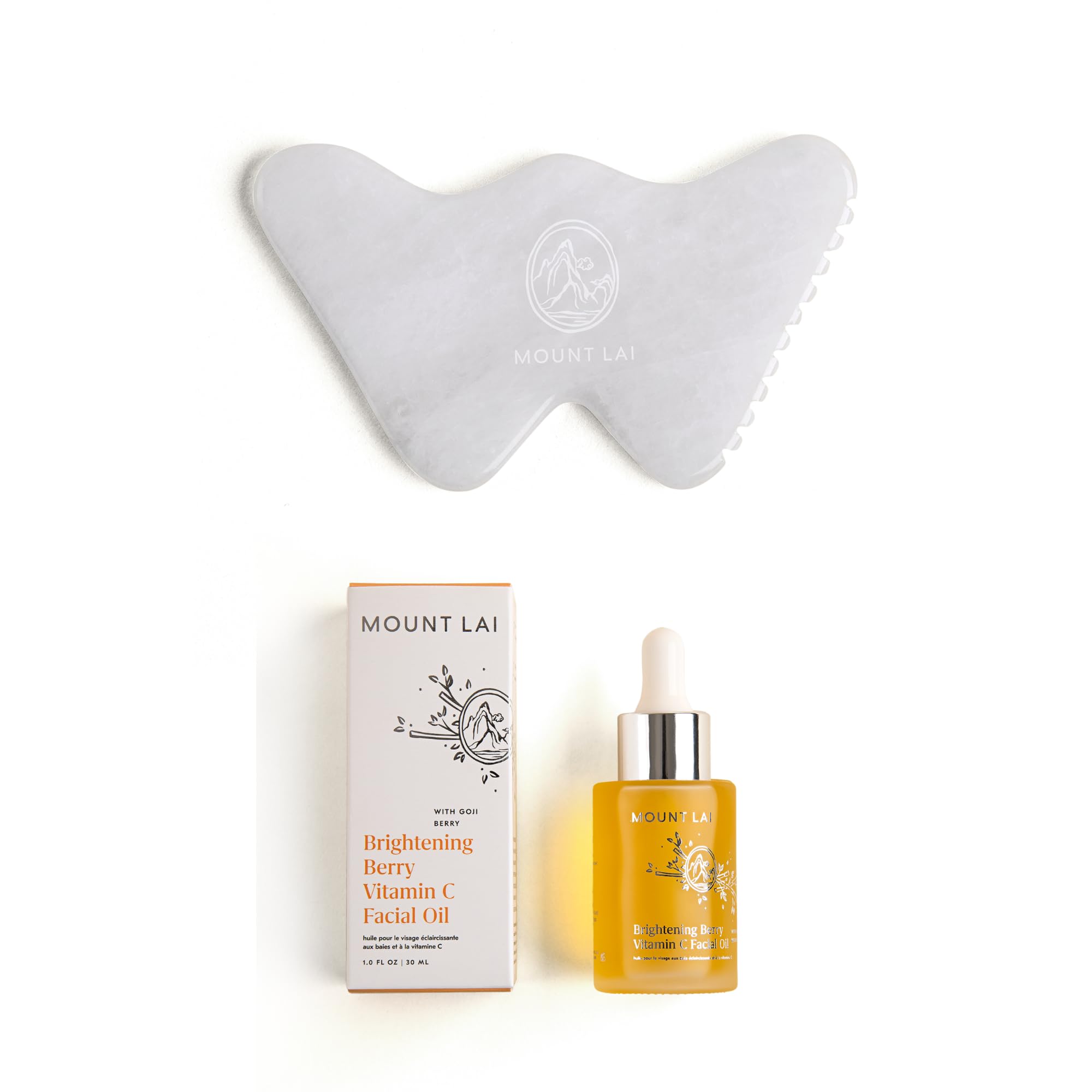 Mount Lai Vitality Qi White Jade Gua Sha + Vitamin C Facial Oil Glow-Enhancing Beauty Set