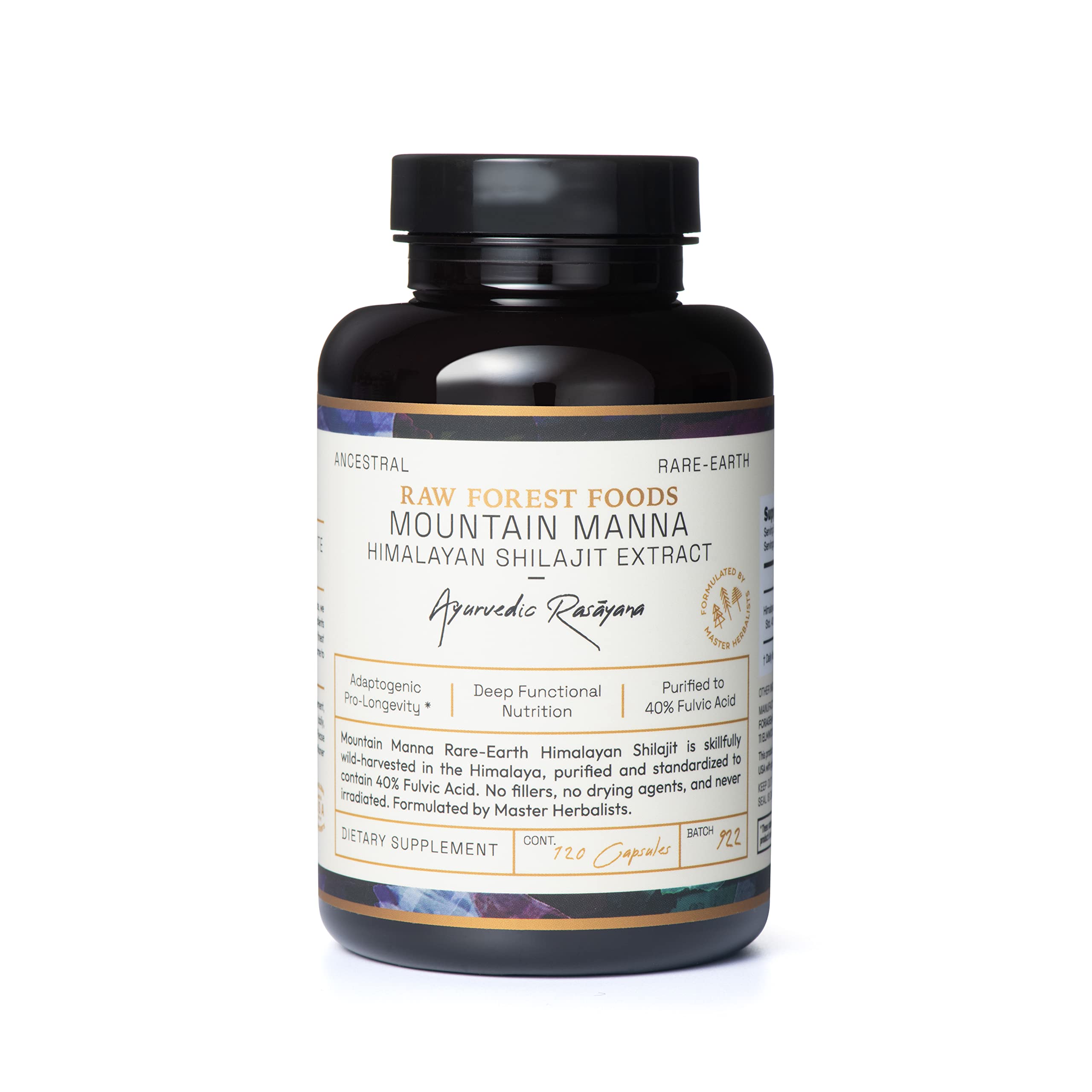 Mountain Manna Himalayan Shilajit Extract Capsules are a rare expression of true ancestral nutrition, offering deeply restorative, adaptogenic support rooted in over 3,000 years of Ayurvedic tradition. Time-honored since time immemorial, Shilajit is an Ayurvedic Rasayana—a rejuvenative tonic traditionally used to nourishojas, strengthen thedhatus, and restore what is lost through time, stress, overexertion, and overwork.