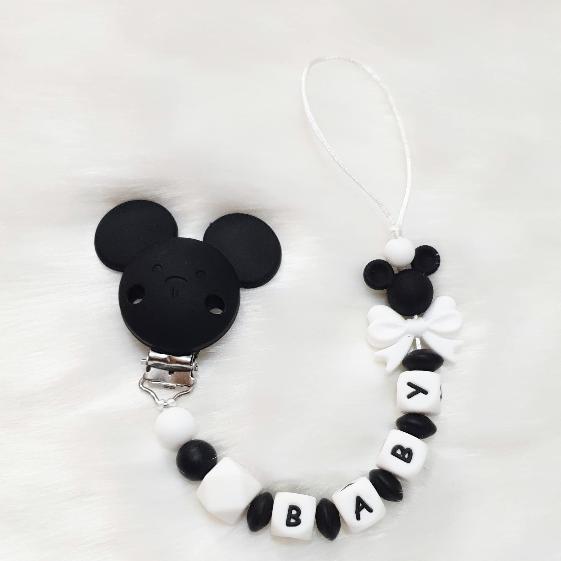 Sweet personalized fabric pacifier chain with a desired name for girls and boys.It's a great baby gift - Ideal gift, for example for birth or baptism, made in loving Handicrafts Cleaning: - Never clean the pacifier holder with sharp cleaning agents or disinfectants, but only with a damp cloth with clear water. Used material: Only the best for the little ones The chains are manufactured according to the European standard EN 12586 The materials are saliva and welding festival according to DIN EN 71-3 The colors and paints are harmless The pacifier chain corresponds to the eco-standards and is extremely tear-resistant The prescribed maximum length (measured from clip) is 22cm The mere contact with saliva usually does not lead to any replacement or wear of the paint.However, saliva contact in conjunction with mechanical influences (such as chewing, biting or sucking) can lead to wear.This type of wear and tear is not a reason for complaint and does not justify exchange or return rights.Due to the harmlessness of the materials, there is no danger to the child. LEGAL NOTICE Security warning: - Check the pacifier holder before each use.- The pacifier chain is not a toy, small parts could be swallowed - throw it away immediately at the first sign of damage or defect!- Never extend the pacifier holder!- Never attach the pacifier holder to cords, ligaments, straps or loose parts of the clothing.Your child can be strangled with it.- Use the pacifier chain only under supervision - check the pacifier chain before each use.At first signs of defects or damage, please dispose of - do not give the pacifier chain to the cot, cradle or playpen if the child is unattended - I expressly point out that I am not liable for any kind of risks that are related to oneimproper use of the pacifier chain.All possible accidents (strangle, swallow, suffocate) can be avoided by perception of the duty of supervision.Materials are only the best for the small, BPA free silicone material, soft and safe for babies, 100 harmful substances - the individual pacifier chain is made of high -quality materials, lollipop and saliva -proof and completely harmful to harm.Super qualities manual work - the pacifier chain is made with more loving.You will receive a high -quality quality product.Up to 7 letters can be selected (only German alphabet without umlauts or special characters) and you can contact us for longer names.Pacifier chain set with name - highly important personalized with your desired name, super fast editing inside two working days and fast shipping.It's a great baby gift - ideal gift, for example for birth or baptism.süße personalisierte Stoff Schnullerkette mit Wunschname für Mädchen und Jungen. es ist ein tolles Babygeschenk - ideales Geschenk, etwa zur Geburt oder Taufe, gefertigt in liebevoller Handarbeit Reinigung: - Reinigen Sie den Schnullerhalter nie mit scharfen Reinigungsmitteln oder Desinfektionsmitteln, sondern nur mit einem feuchten Tuch mit klarem Wasser. Verwendete Materialien: nur das Beste für die Kleinen die Ketten werden nach der europäischen Norm EN 12586 gefertigt die Materialien sind speichel- und schweißfest nach DIN EN 71-3 die Farben und Lacke sind unbedenklich die Schnullerkette entspricht den Öko-Standards und ist extrem reißfest die vorgeschriebene maximale Länge (gemessen ab Clip) beträgt 22cm Der bloße Kontakt mit Speichel führt in der Regel zu keiner Ablösung oder Abnutzung des Lackes. Jedoch kann Speichelkontakt in Verbindung mit mechanischen Einflüssen (wie kauen, beißen oder lutschen) zur Abnutzung führen. Diese Art der Abnutzung ist kein Reklamationsgrund und begründet kein Umtausch- oder Rückgaberecht. Durch die Unbedenklichkeit der Materialien geht zu keiner Zeit eine Gefahr für das Kind aus. RECHTLICHE HINWEISE Sicherheitswarnung: - Kontrollieren Sie den Schnullerhalter vor jedem Gebrauch. - die Schnullerkette ist kein Spielzeug, Kleinteile könnten verschluckt werden - Werfen Sie ihn beim ersten Anzeichen von Beschädigungen oder Mängeln sofort weg! - Verlängern Sie niemals den Schnullerhalter! - Befestigen Sie den Schnullerhalter niemals an Schnüren, Bändern, Trägern oder losen Teilen der Kleidung. Ihr Kind kann sich damit erdrosseln. - die Schnullerkette nur unter Aufsicht verwenden - die Schnullerkette vor jedem Gebrauch prüfen. Bei ersten Anzeichen von Mängeln oder Beschädigungen bitte entsorgen - die Schnullerkette nicht mit ins Kinderbett, Wiege oder Laufstall geben, wenn das Kind unbeaufsichtigt ist - Ich weise ausdrücklich darauf hin, dass ich keine Haftung für jegliche Art von Risiken übernehme, die in Zusammenhang mit einem unsachgemäßen Gebrauch der Schnullerkette entstehen. Alle möglichen Unfälle (Strangulieren, Verschlucken, Ersticken ect.) können durch Wahrnehmung der Aufsichtspflicht vermieden werden.Verwendete Materialien sind nur das Beste für die Kleinen, BPA Free Silikon Material, weich und sicher für Babys, 100 Schadstofffrei - Das individuelle Schnullerkette ist aus hochwertigen Materialien gefertigt, lutsch- und speichelfest und vollkommen schadstofffrei. Super Qualitäten Handarbeit – die Schnullerkette wird mit liebevoller gefertigt. Sie erhalten ein hochwertiges Qualitätsprodukt. Es können bis zu 7 Buchstaben ausgewählt werden (nur deutsches Alphabet ohne Umlaute oder Sonderzeichen) und Sie können uns gerne kontaktieren für längere Namen. Schnullerkette Set mit Name - Hochwertig personalisiert mit Ihrem Wunschnamen, Super schnelle Bearbeitung inerhalb zwei Werktagen und schneller Versand. Es ist ein tolles Babygeschenk - ideales Geschenk, etwa zur Geburt oder Taufe.Maus silikon Schnullerkette Set mit Namen fur Madchen und Jungen - süße Schleife mit wunschname (Schwarz)