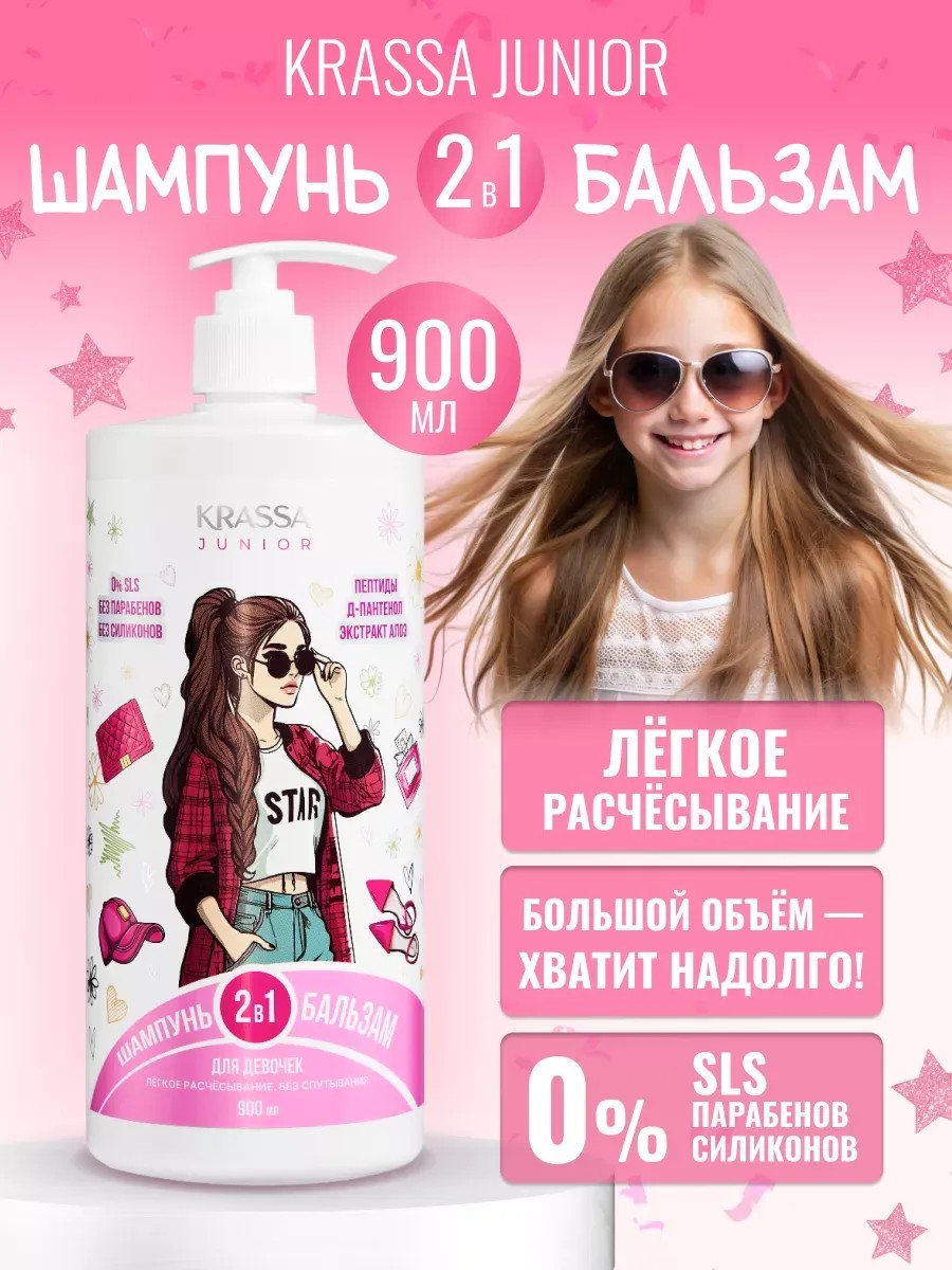 Детский шампунь для волос KRASSA Junior разработан с использование ключевых питательных ингредиентов. Пептиды, которые содержит шампунь для девочек, наполняют волосы и кожу головы питательными веществами, укрепляют волосяные луковицы, нормализуют жировой баланс кожи головы и работу сальных желез. Тщательно подобранные Активные компоненты профессионального шампуня дарят ощущение свежести и чистоты для ребенка. Д-Пантенол (провитамин B5) питает и укрепляет волосы, восстанавливает, борется с шелушением и раздражением, стимулирует рост волос, придает гладкость и эластичность. Экстракт Алоэ обеспечивает питание и глубокое увлажнение, устраняет ломкость и восстанавливает по всей длине, дарит волосам гладкость и здоровый блеск. Формула шампуня 2 в 1 детский бережно удаляет с волос и кожи головы любые виды загрязнений, при этом не вызывая раздражения и сухости. Благодаря увлажняющим и кондиционирующим комплексам волосы легко расчесываются, становятся мягкими и послушными. 0% sls. Без парабенови силиконов. Лёгкое расчесывание. Без спутывания. Увлажняющий шампунь для детей - незаменимое средство для ухода за ребенком. Восстанавливающий шампунь KRASSA прекрасно подойдет для подростков. Подходит для детей с 8ми лет. Вы ищите подарки на новый год 2025? Подарите своим родным и близким заботу и любовь, выбрав продукцию бренда KRASSA. Это будет отличный подарок на новый год.