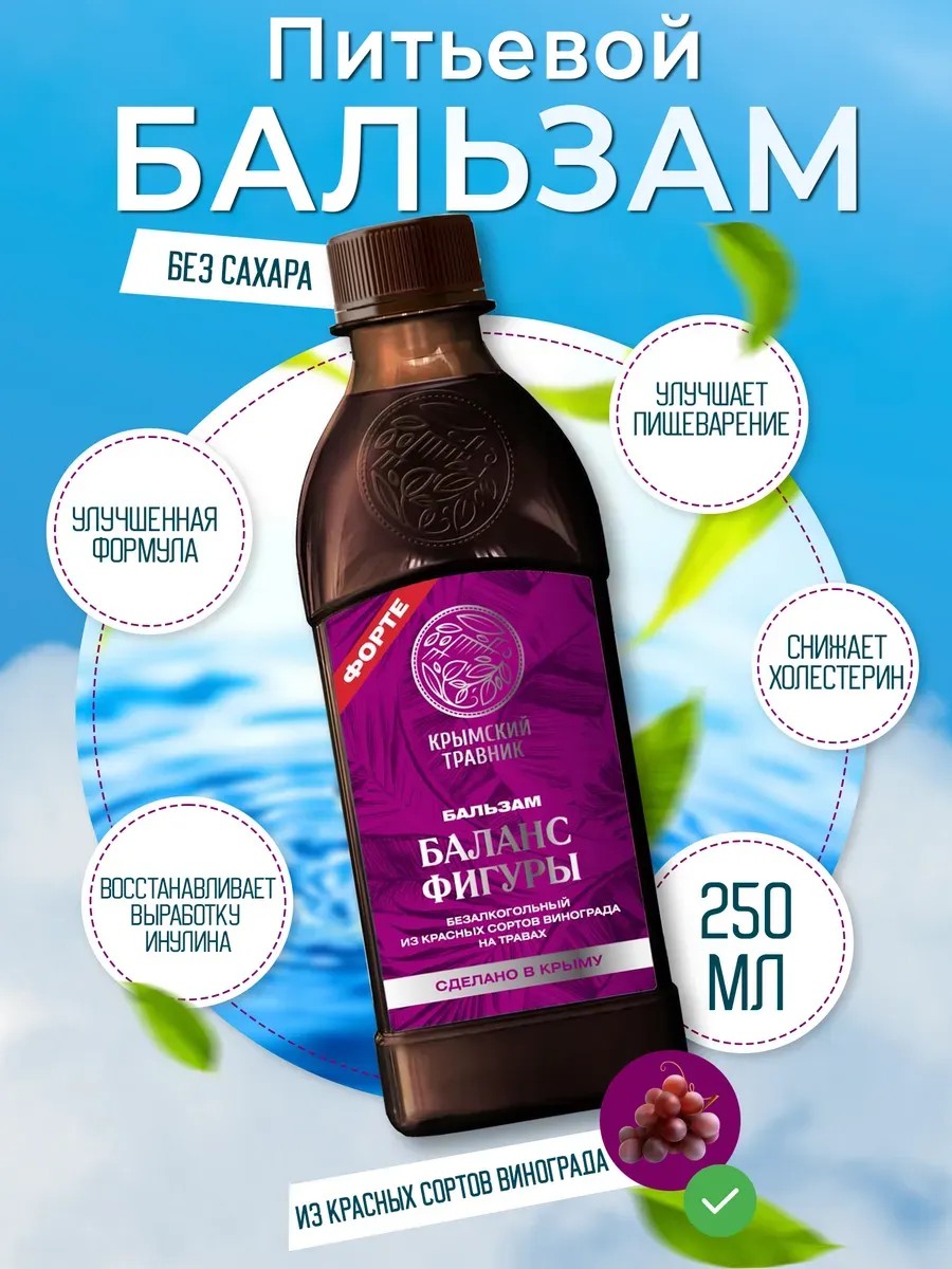 | Комплектация | Питьевой бальзам Баланс фигуры; бальзамы и сиропы; крымский травник; Крымская косметика; красота и здоровье; уходовая косметика; подарки женщинам; органическая косметика; аптечная косметика; Коктейль для похудения; для похудения средства; коктейль для похудения для женщин |