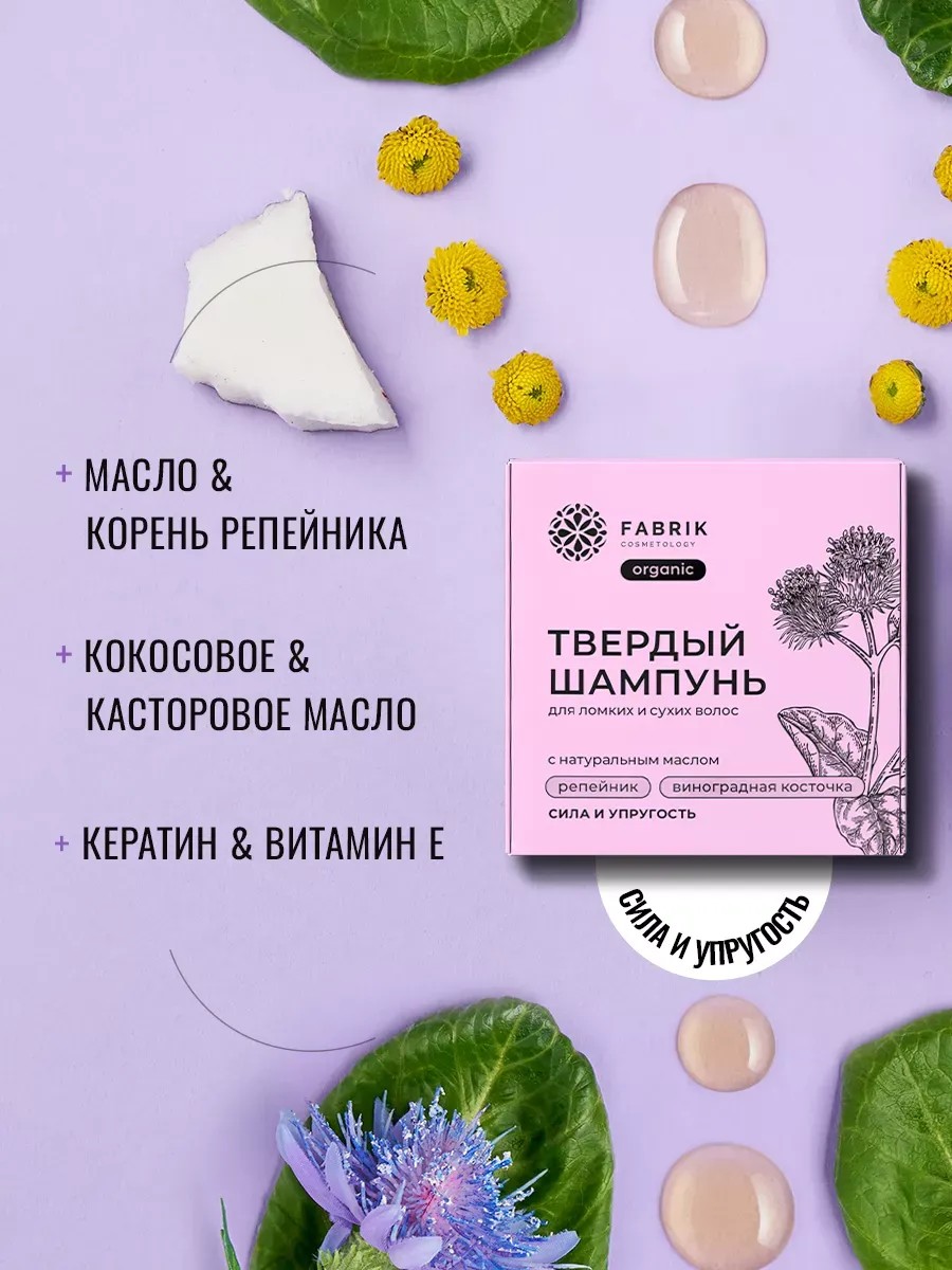 Твердый шампунь с натуральным маслом «Репейник». Основа любого репейного шампуня – вытяжка из корней лопуха. Экстракт репейника или лопуха считается одним из лучших растительных средств для ухода за ослабленными волосами. Шампунь на его основе является сильным средством для укрепления волос. При использовании твердого шампуня волосы становятся ровными, мягкими и блестящими.