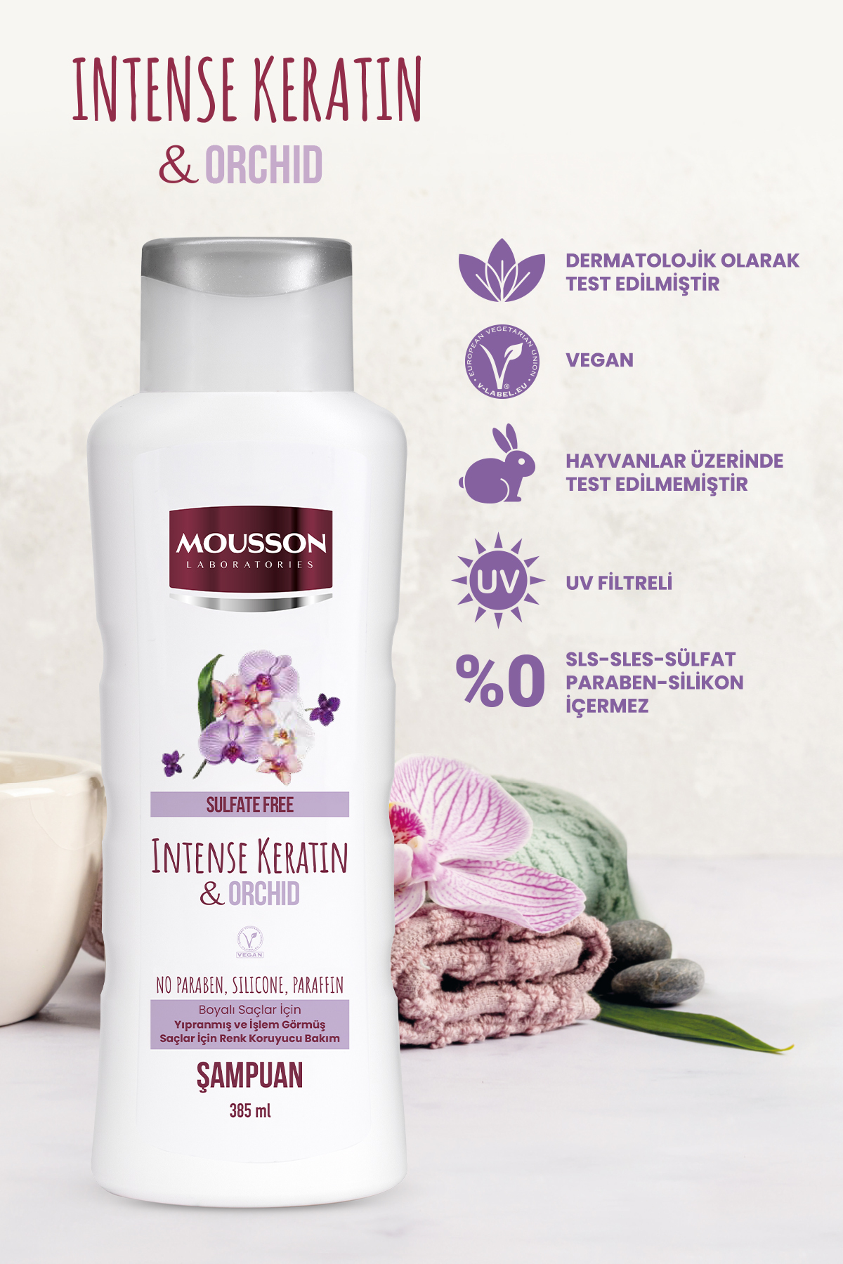 Mousson Intensive Keratin & Orchid Color Protecting and Damage Repairing Sulfate-Free Shampoo 385 ml