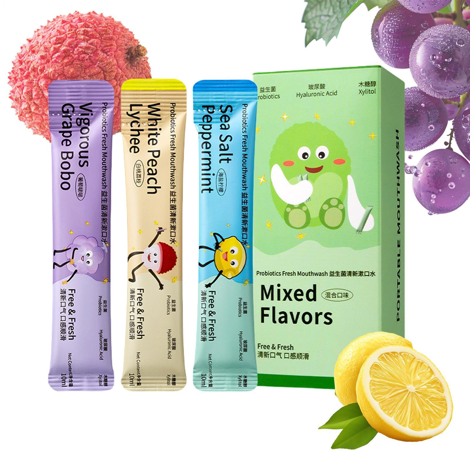With their portability and ability to provide long-lasting freshness, these fruity mouthwash sachets meet the needs of adults seeking a convenient solution. These individual sachets are perfect for daily use after meals, while traveling, during hotel stays, or simply for regular use at home in the bathroom. A smart choice to incorporate freshness into your daily routine. Features: Name: Mouthwash Style: Mixed Fruit Flavor Contents: 10 ml x 15 pieces Product List: 15 Travel Mouthwash Packets Note: Due to different lighting and screen settings, the item's color may be slightly different from the picture. Due to different manual measurements, please allow a 1-2 cm size difference.
