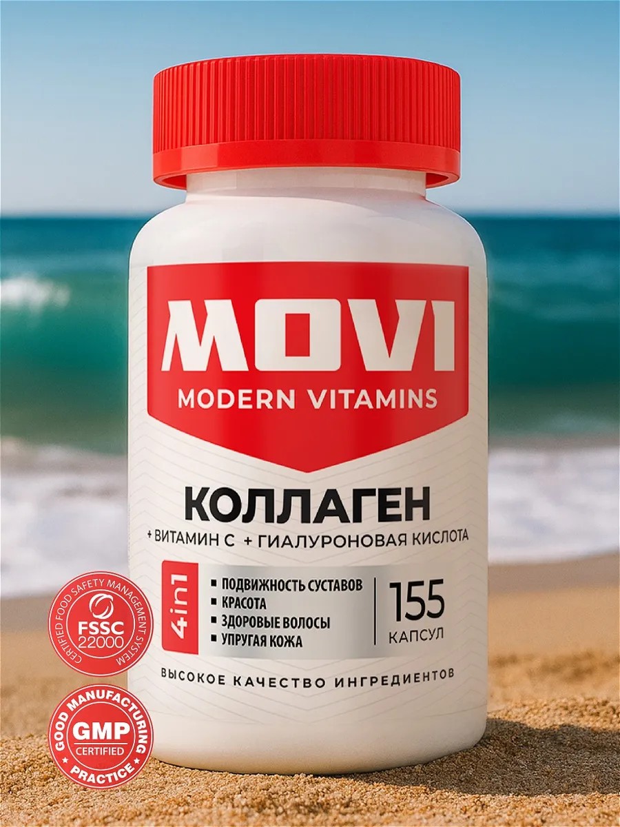 Коллаген с гиалуроновой кислотой и витамином С от MOVI обладает эффективным действием 4 в 1: поддерживает подвижность суставов, позволяет сохранить естественную красоту, восстанавливает здоровье волос, повышает упругость кожи.