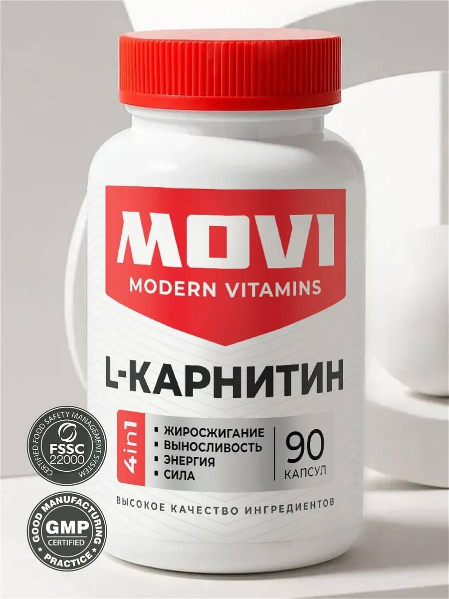 Enhance your workout results by adding the amino acid L-carnitine from MOVI to your diet. Sports nutrition has a 4-in-1 effect: it promotes fat burning, increases endurance, provides energy, and increases strength.
