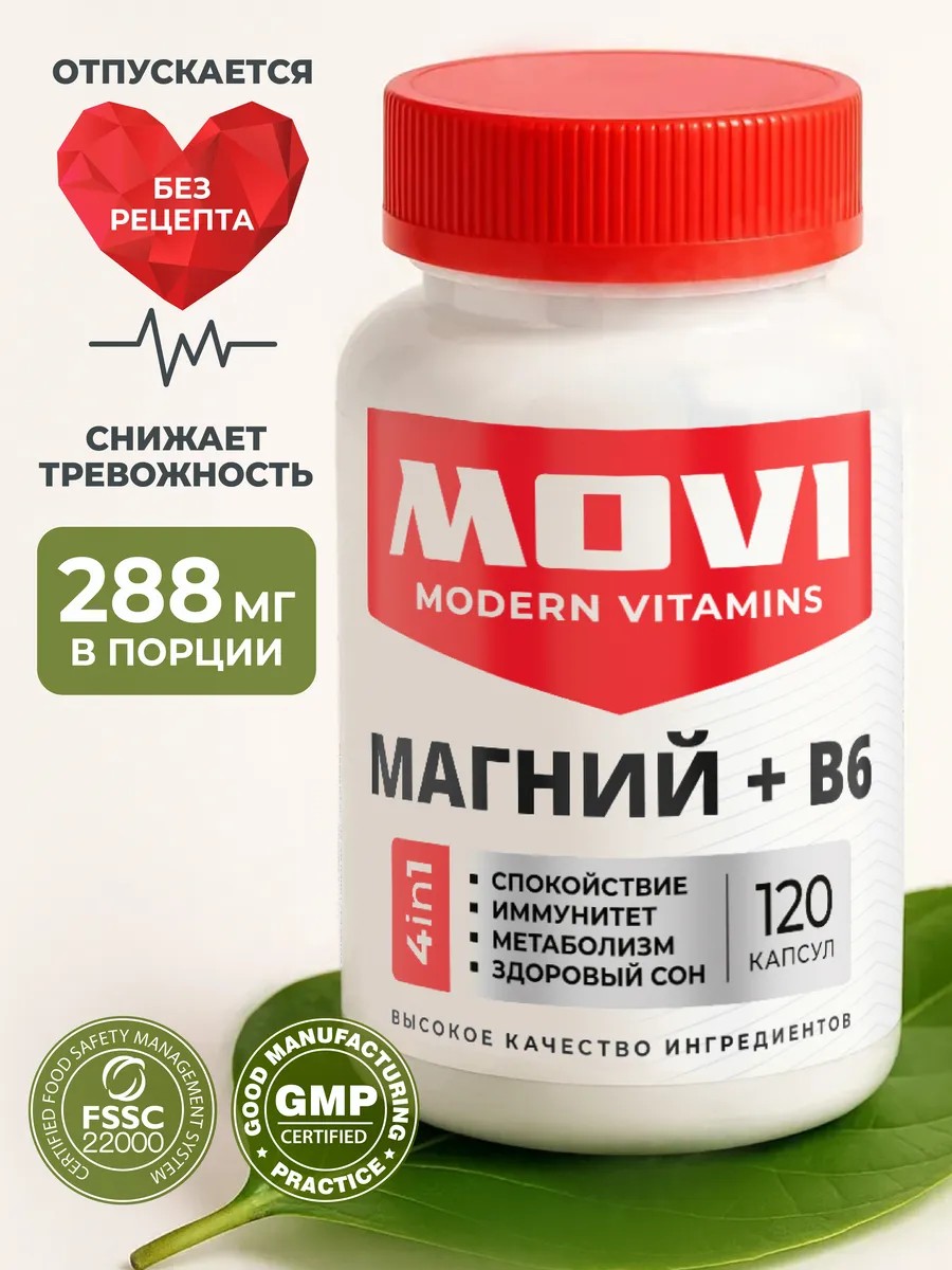 MOVI's 4-in-1 Magnesium Citrate with Vitamin B6 vitamin complex strengthens the nervous system, normalizes sleep, boosts immunity, and improves metabolism.