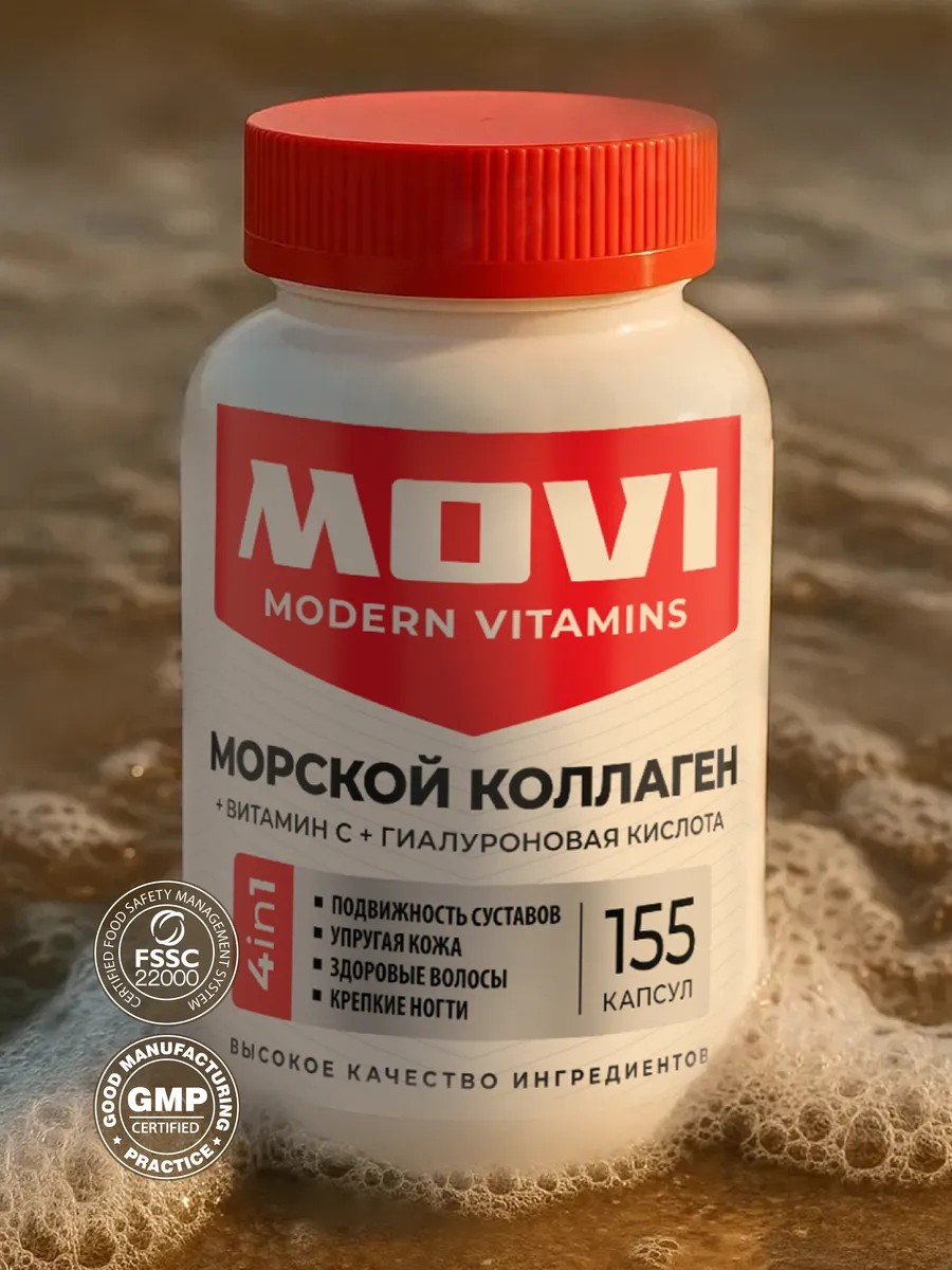 Морской коллаген с гиалуроновой кислотой и витамином С от MOVI обладает эффективным действием 4 в 1: поддерживает подвижность суставов, сохраняет кожу упругой, улучшает состояние волос, укрепляет ногти.