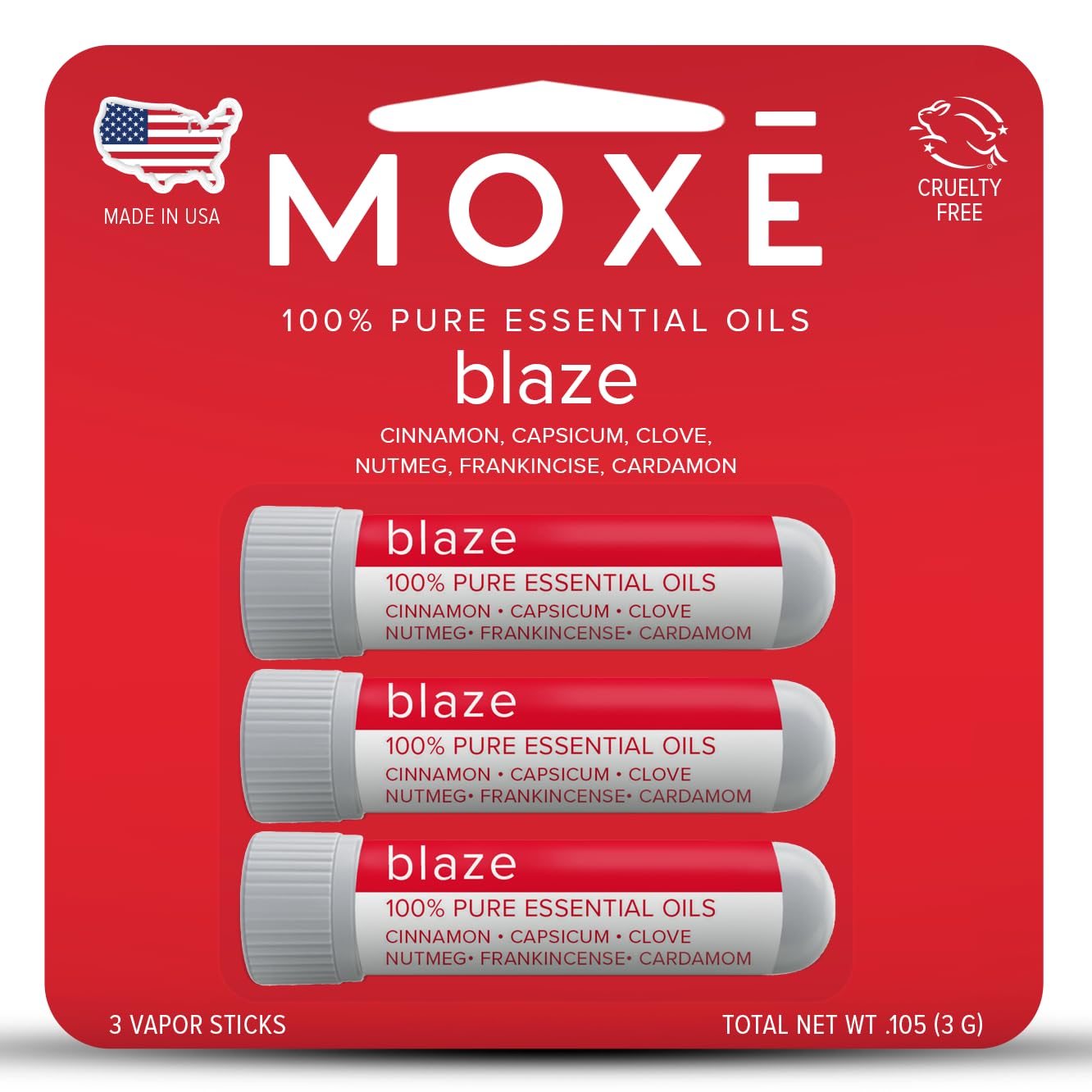 Long-lasting Aromatherapy: Each inhaler provides weeks of aromatic delight. Uncap it, bring it close to your nose, and take a deep breath to embark on a journey towards warmth and well-being. 100 Natural: Immerse yourself in the beauty of aromatherapy in its purest form. MOXE Spiced Nasal Inhalers are free from synthetic fragrances and harsh chemicals, allowing you to breathe in the warmth and goodness of nature. Portable and Convenient: Designed for your active lifestyle, our Spiced Nasal Inhaler fits effortlessly into your pocket, purse, or yoga bag. Experience the comforting warmth of natural aromatherapy wherever and whenever you desire. No spills, no mess – just the purest, most invigorating scents. Proudly Made in the USA: At MOXE, we believe in quality, craftsmanship, and the power of natural ingredients. Our Spiced Nasal Inhalers are lovingly handcrafted in the USA, ensuring that you receive the finest product with every breath. Experience the pride of supporting American manufacturing while indulging in premium aromatherapy. A spicy yet soothing aroma that hugs you from the outside in and embodies relaxing feelings of warmth and comfort. Reminiscent of a cinnamon fireball candy, MOXE Signature Blaze Blend takes nostalgia and memories of the holiday season to a whole new level.