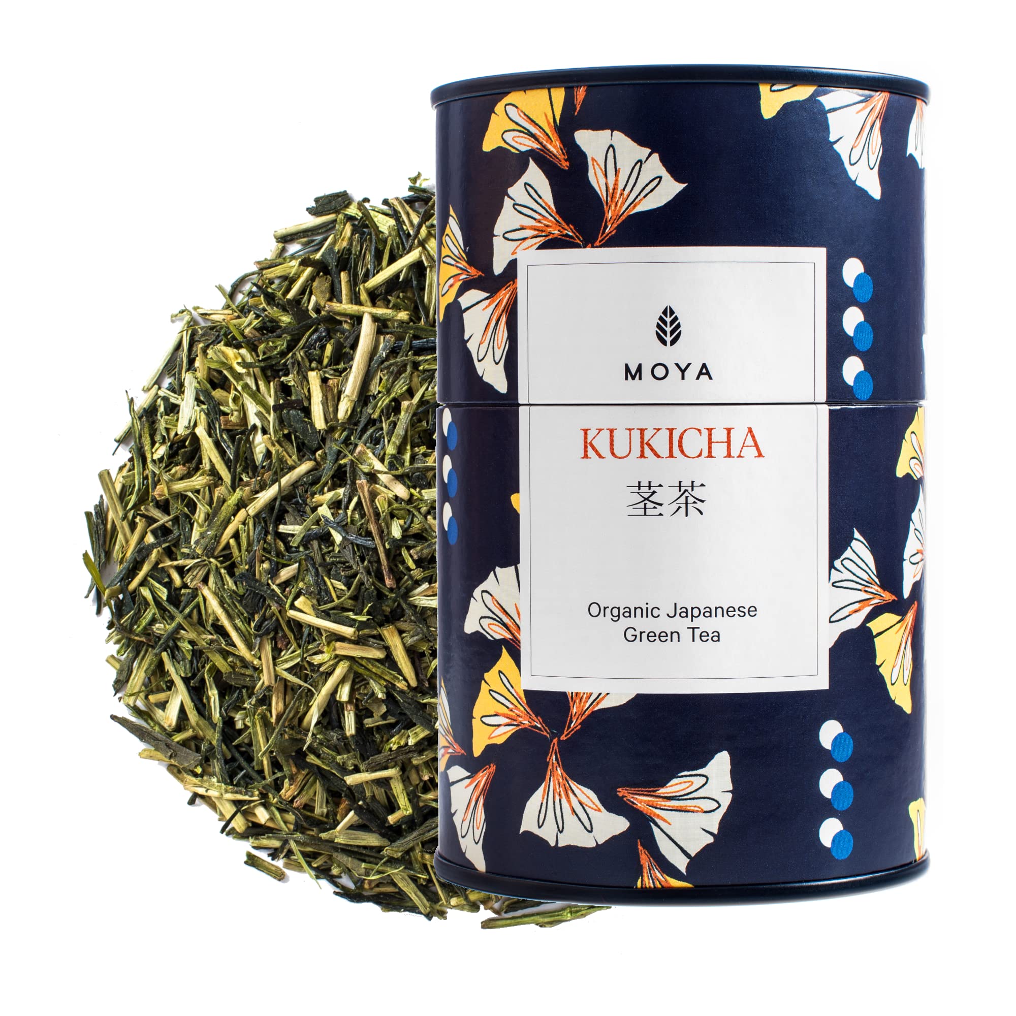 MOYA MATCHA Moya Organic Japanese Kukicha Green Leaf Tea 60g The best quality tea from Japan Suitable for vegetarians and vegans Packed in metal tea box 60 g Kukicha