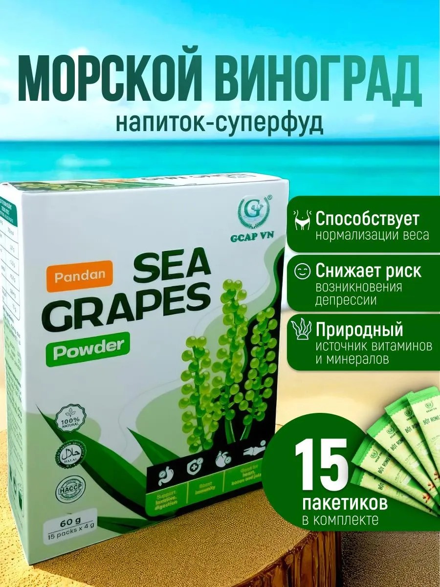 | Состав | пудра морского винограда; Органический кокосовый сахар; инулин; листья пандана |