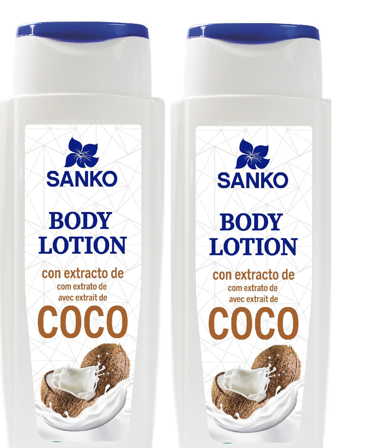 Crème Body Milk hydratante corps à l'extrait de coco Sanko [x2 flacons 300 ml 600 ml]